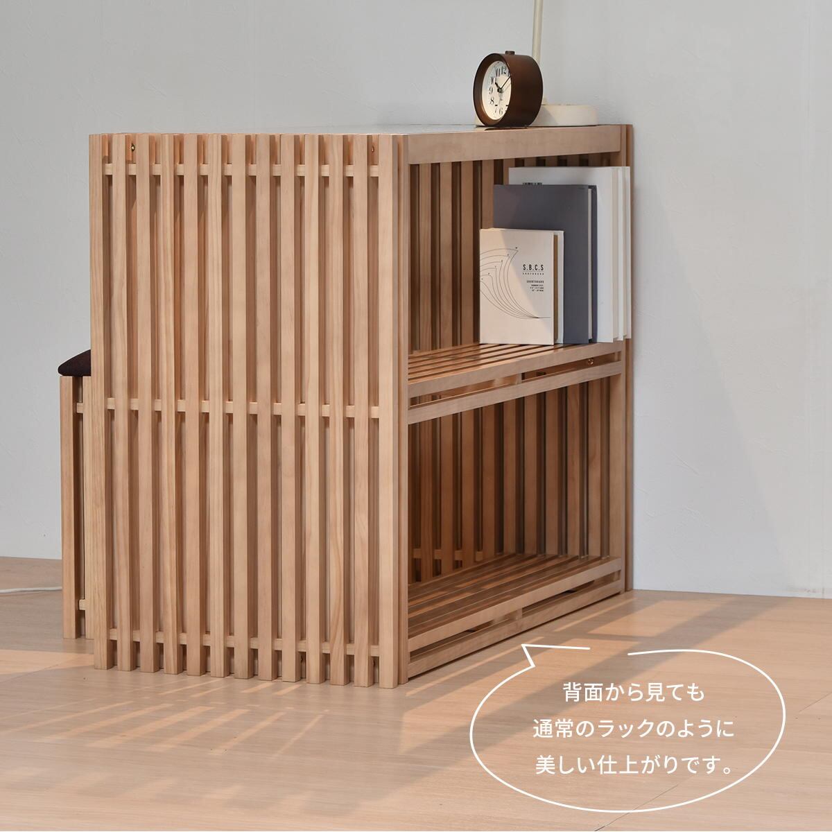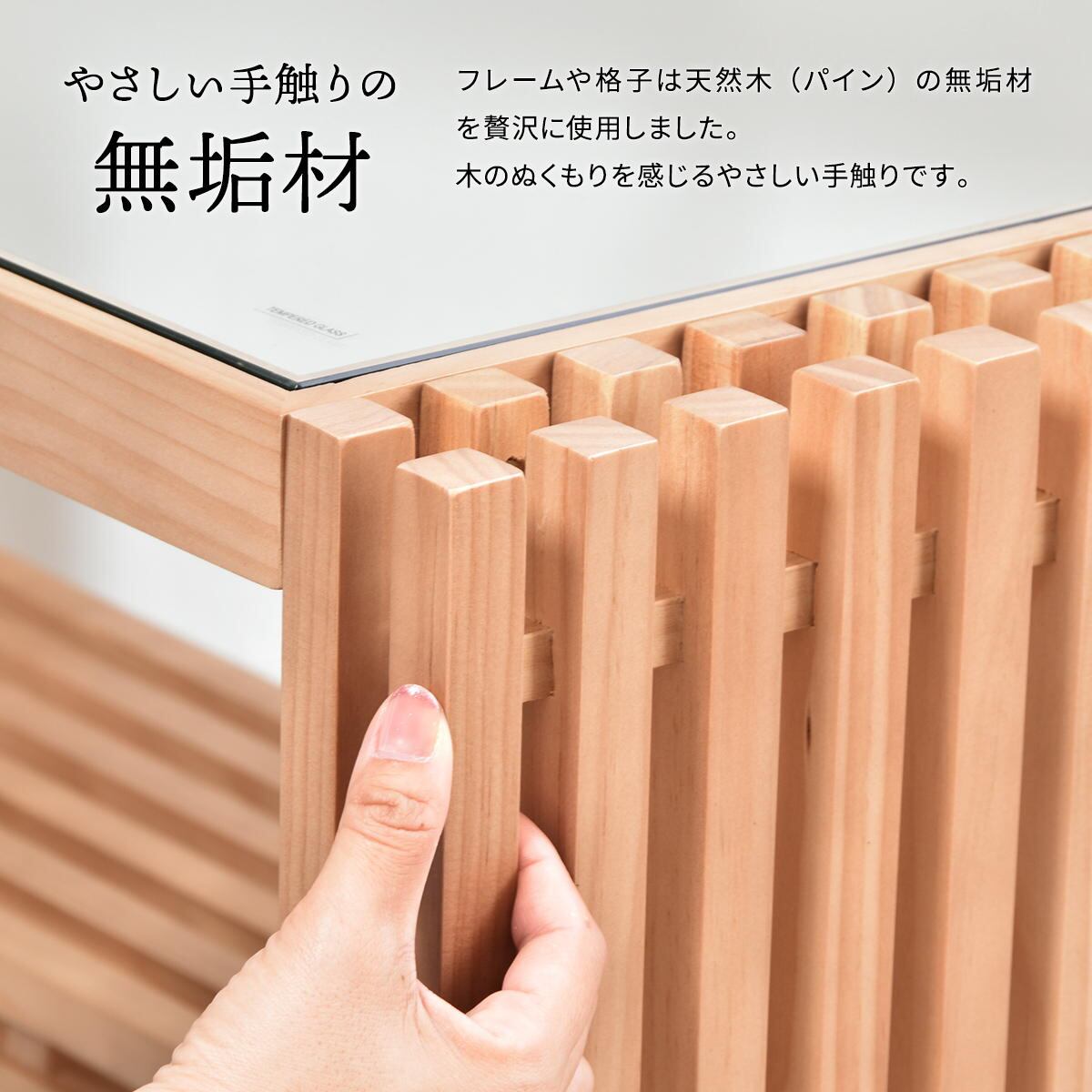 フレームや格子は天然木(パイン材)の無垢材を使用している贅沢な仕上がりのデスクです。