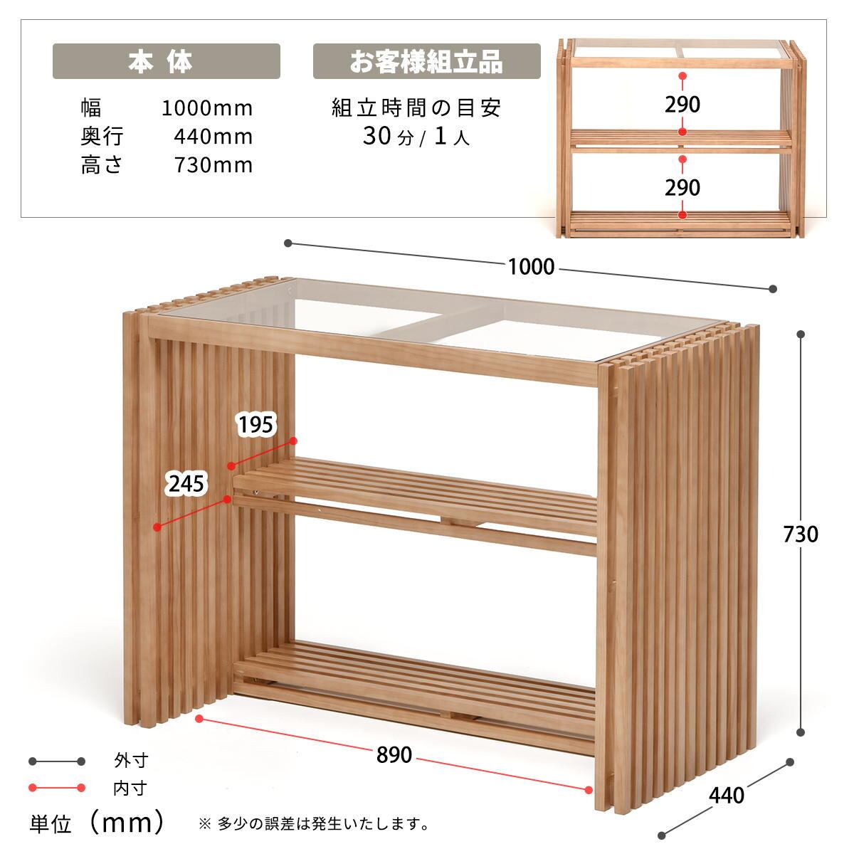 ■耐荷重(約):天板40kg、棚板(1枚あたり)15kg