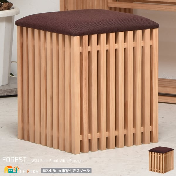 収納付きスツール スツール 34.5cm ブラウン 足置き 腰掛け 椅子 背もたれ無し 肘掛け無し 肘置き無し サブチェア チェアー おすすめ おしゃれ 北欧 モダン スタイリッシュ 天然木使用 ソファサイド 座面下収納付き