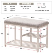 玄関にちょっと腰掛けられるベンチをブークレ生地で仕上げたシューズラック付きの玄関ベンチです。