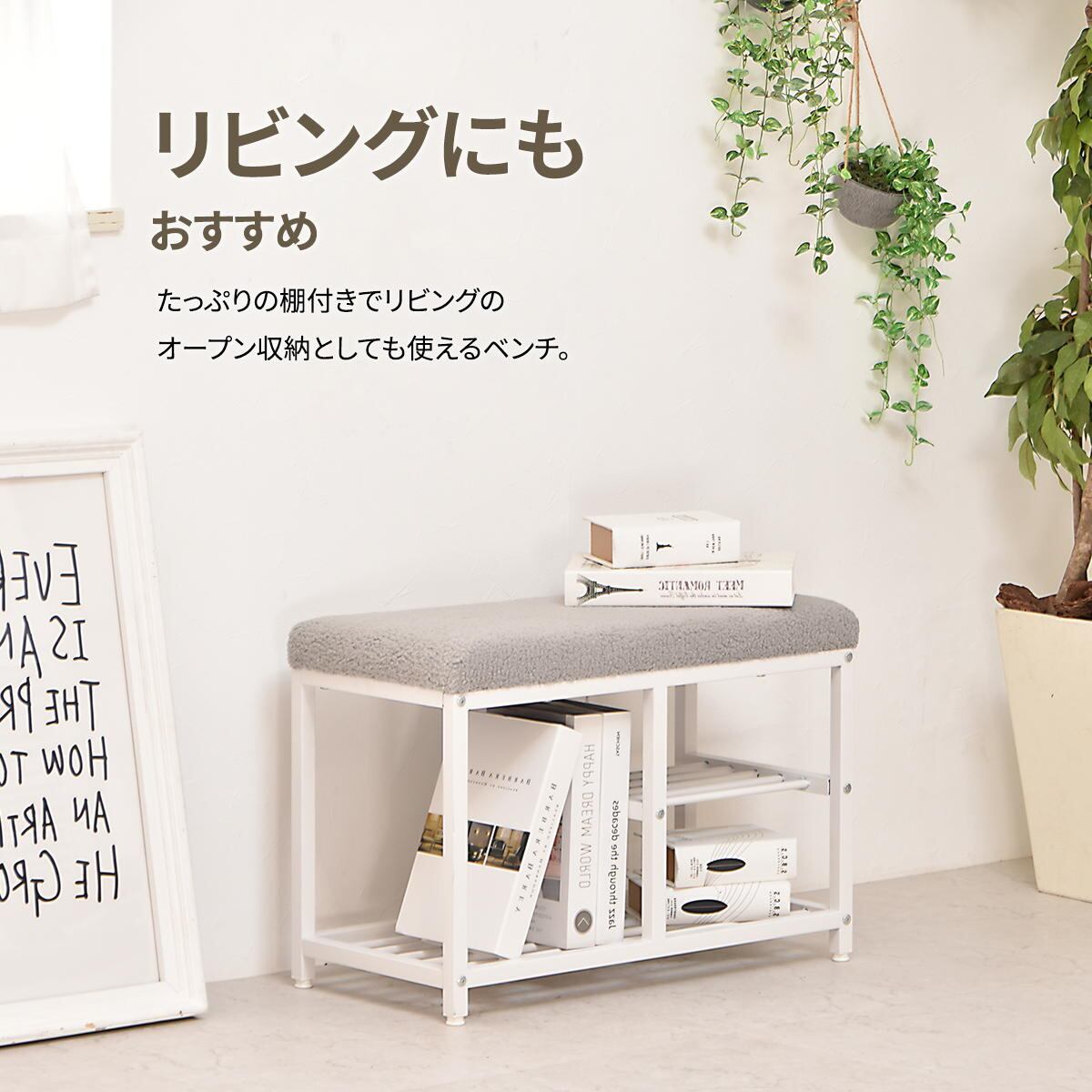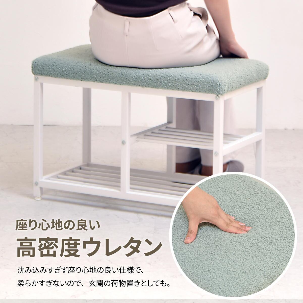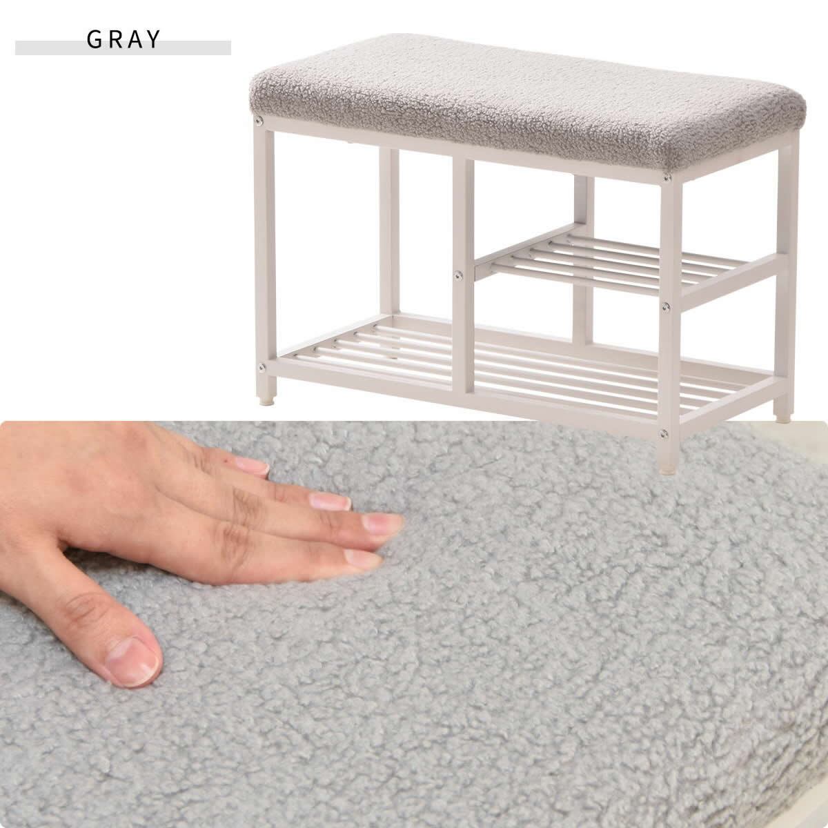 収納付きベンチ 61.5cm幅 グレー ピンク ライトグレー シューズラック付きベンチ 玄関ベンチ リビングベンチ 室内ベンチ ブークレ生地使用 スチールフレーム おすすめ おしゃれ 北欧 モダン スタイリッシュ 背もたれ無し 肘掛け無し 肘置き無し アームレスチェア スツール ベンチ 一人用ベンチ 室内用ベンチ ベンチシューズラック 収納ラック付きベンチ 椅子 収納棚付きベンチ