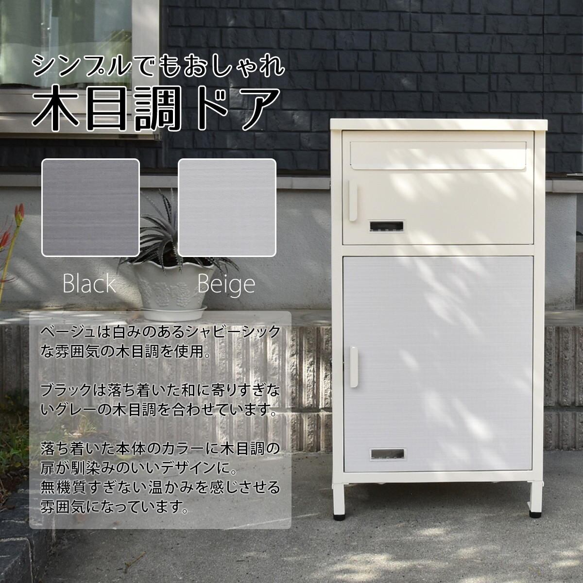 宅配ボックス 40.5cm幅 ベージュ ブラック 配達ボックス 宅急便受け取りボックス 幅40.5cm 奥行36.5cm 高さ77cm おすすめ おしゃれ モダン シンプル ポスト 郵便 郵便ポスト スリット窓付き 確認窓付き 鍵付き プッシュキー シリンダー錠 荷物受け取りボックス 大容量