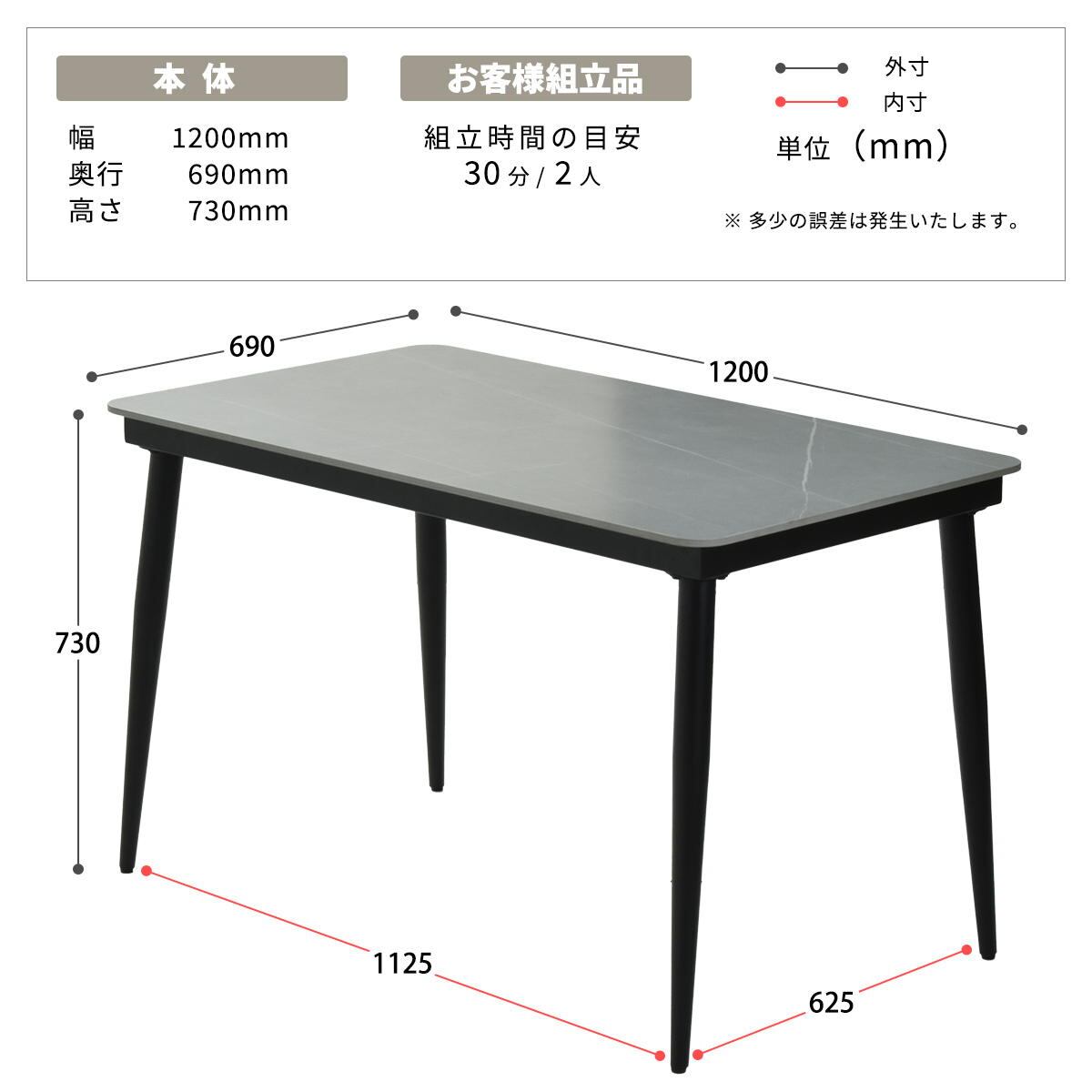 ■商品サイズ(約):幅120cm、奥行69cm、高さ73cm