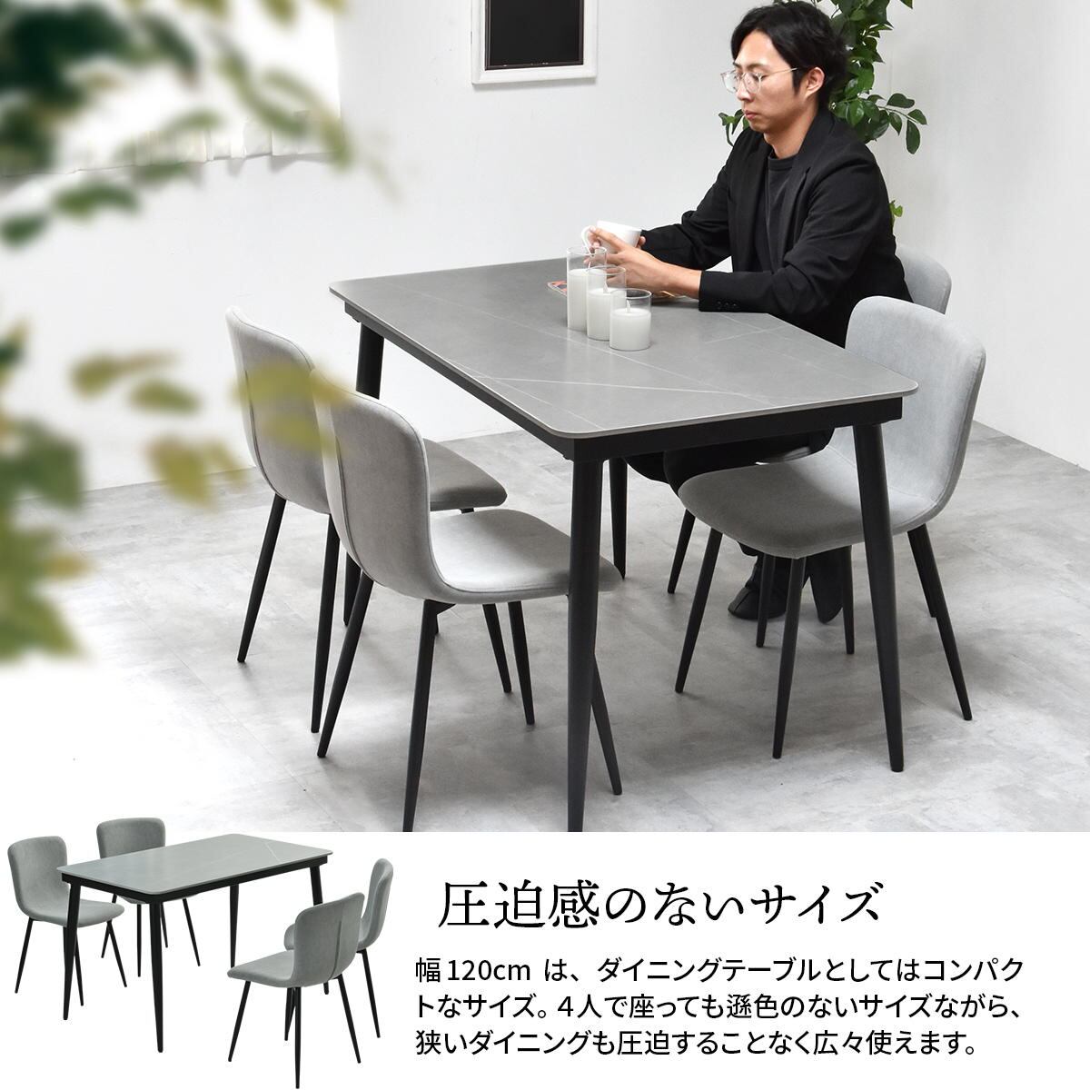 ダイニングテーブルとしての使用はもちろん、書斎デスクや作業台として、趣味や読書の作業用テーブルとしてのしようもおすすめの120cm幅のテーブルです。