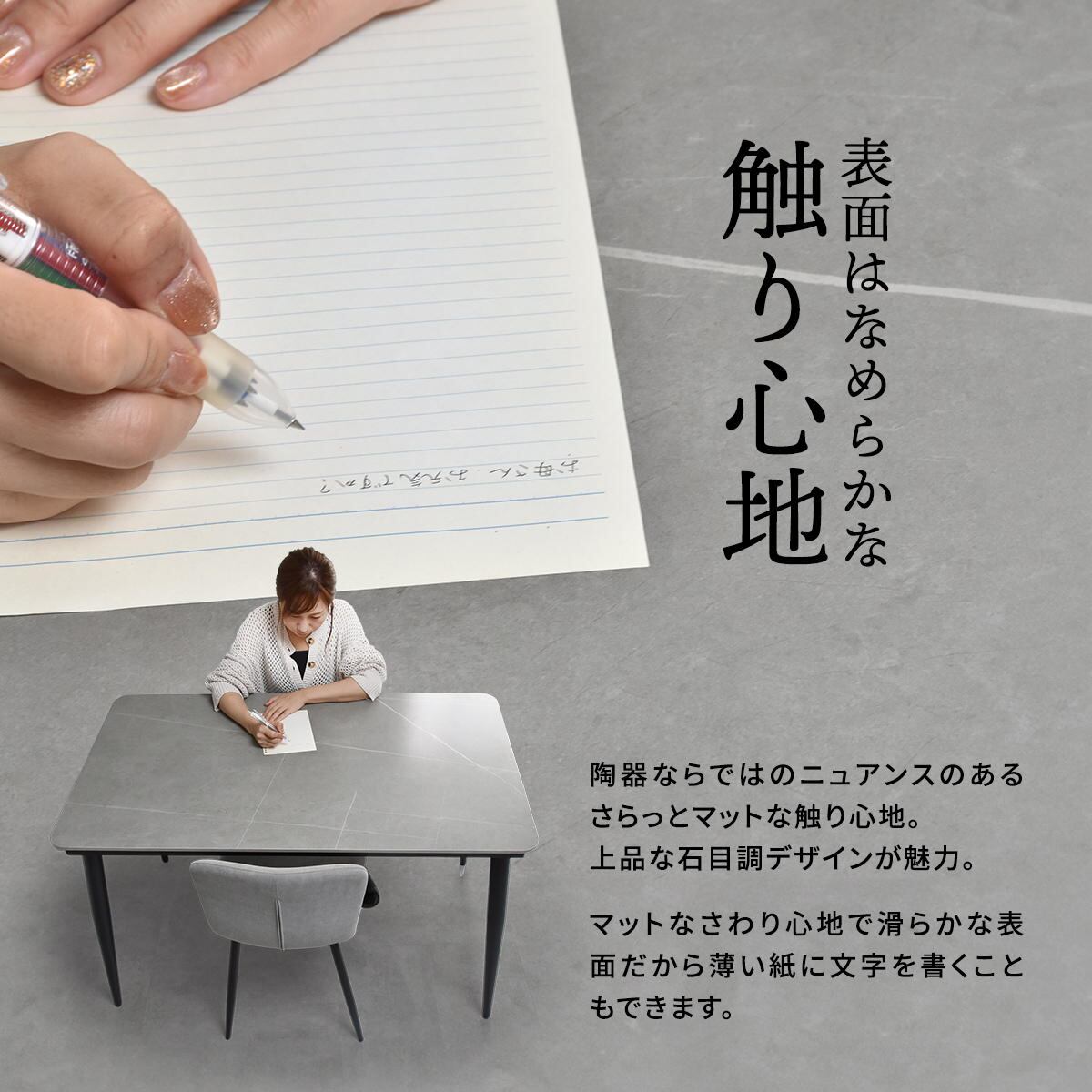 さらっとマットな触り心地の上品な石目調デザインの天板です。