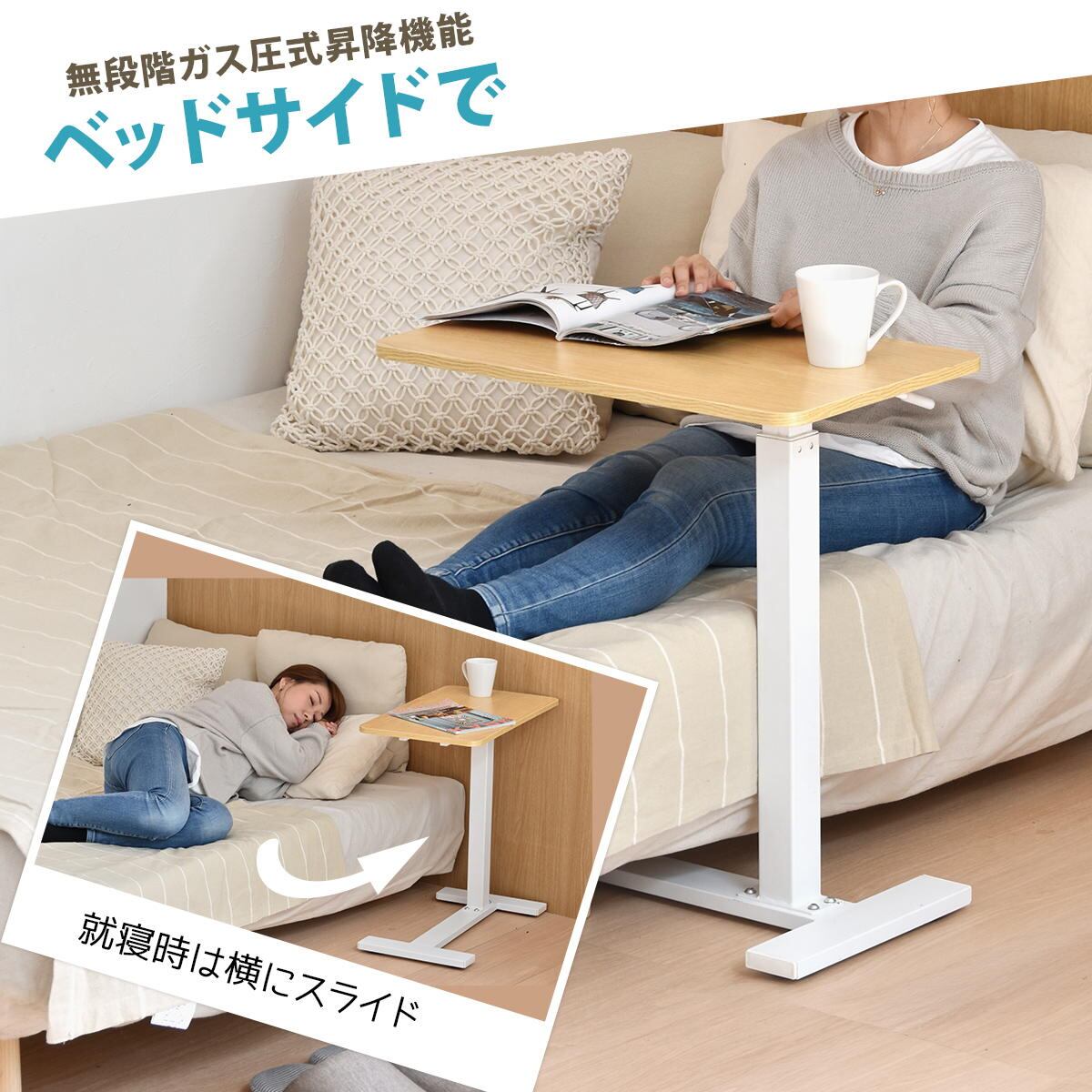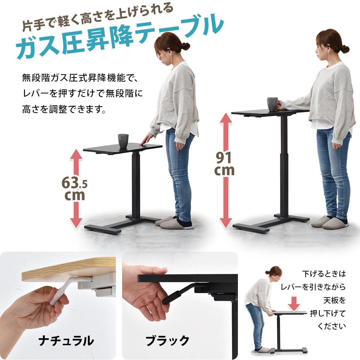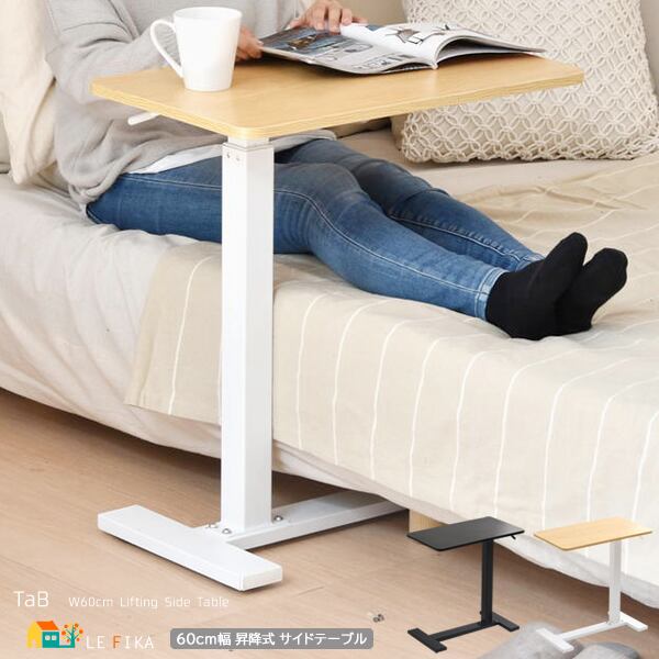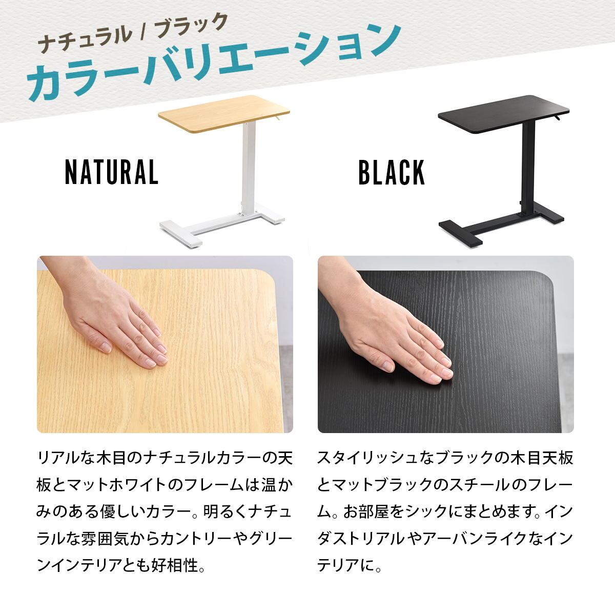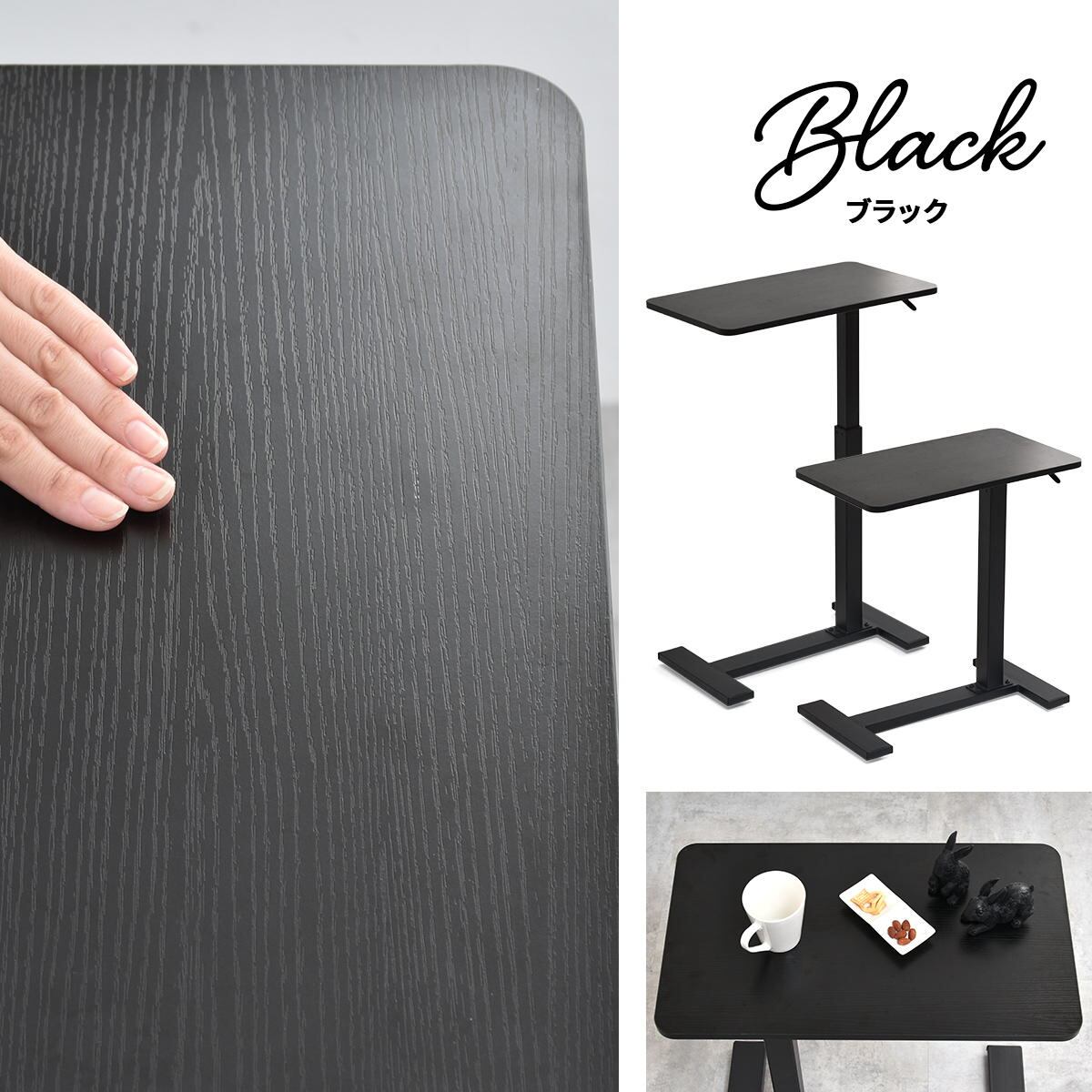 サイドテーブル 60cm幅 ブラック ナチュラル 昇降テーブル 無段階昇降テーブル ガス圧昇降テーブル キャスター付きテーブル スタンディングデスク ソファサイドテーブル ベッドサイドテーブル おすすめ おしゃれ 北欧 モダン スタイリッシュ 隠しキャスター付き 天板昇降テーブル 作業テーブル 作業台 作業デスク リビング 寝室 ソファ横 ベッド横 机 テーブル