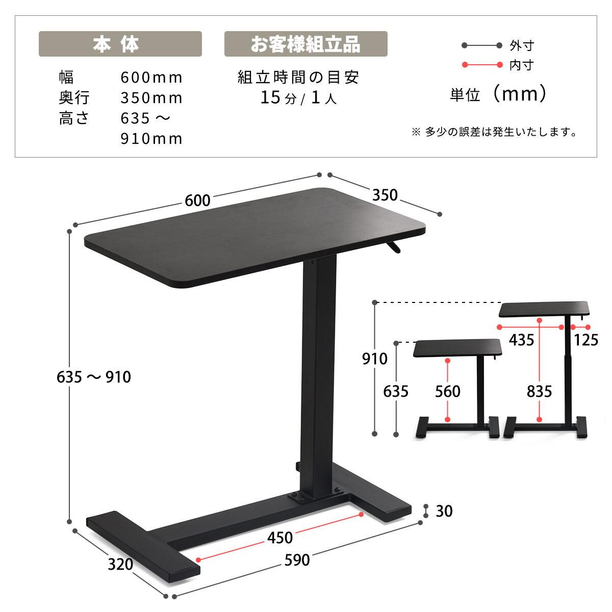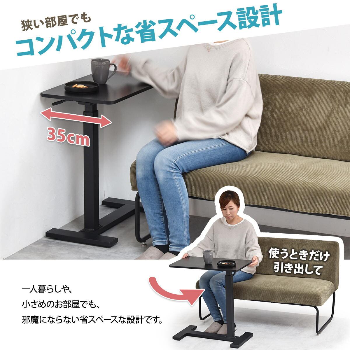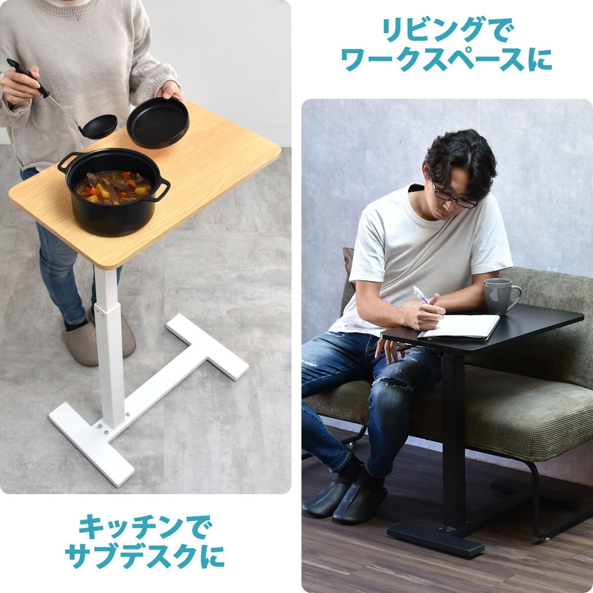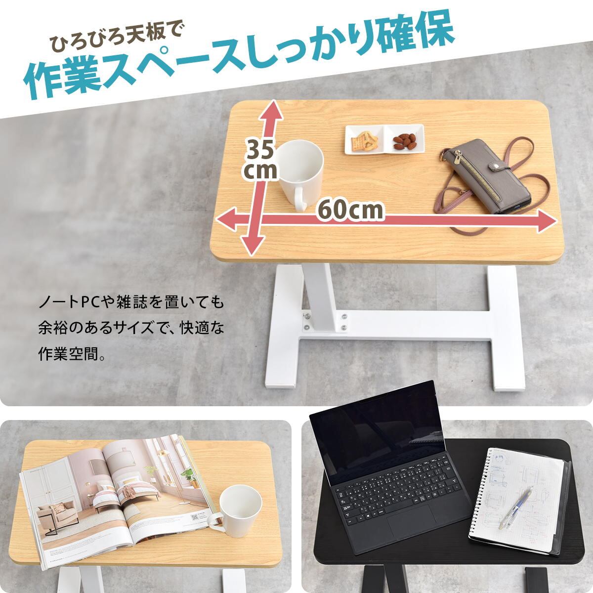 サイドテーブル 60cm幅 ブラック ナチュラル 昇降テーブル 無段階昇降テーブル ガス圧昇降テーブル キャスター付きテーブル スタンディングデスク ソファサイドテーブル ベッドサイドテーブル おすすめ おしゃれ 北欧 モダン スタイリッシュ 隠しキャスター付き 天板昇降テーブル 作業テーブル 作業台 作業デスク リビング 寝室 ソファ横 ベッド横 机 テーブル