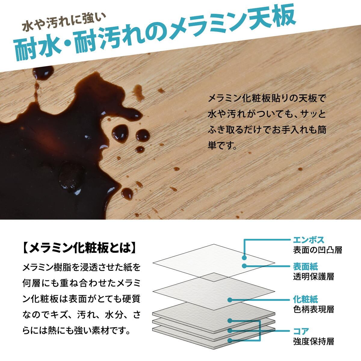 ・天板:中質繊維板(メラミン貼り)