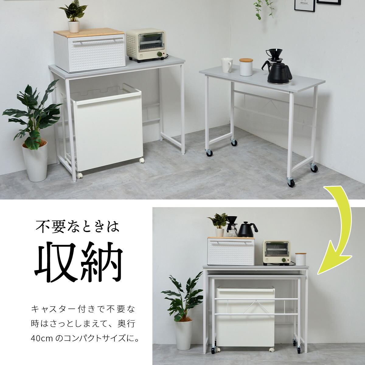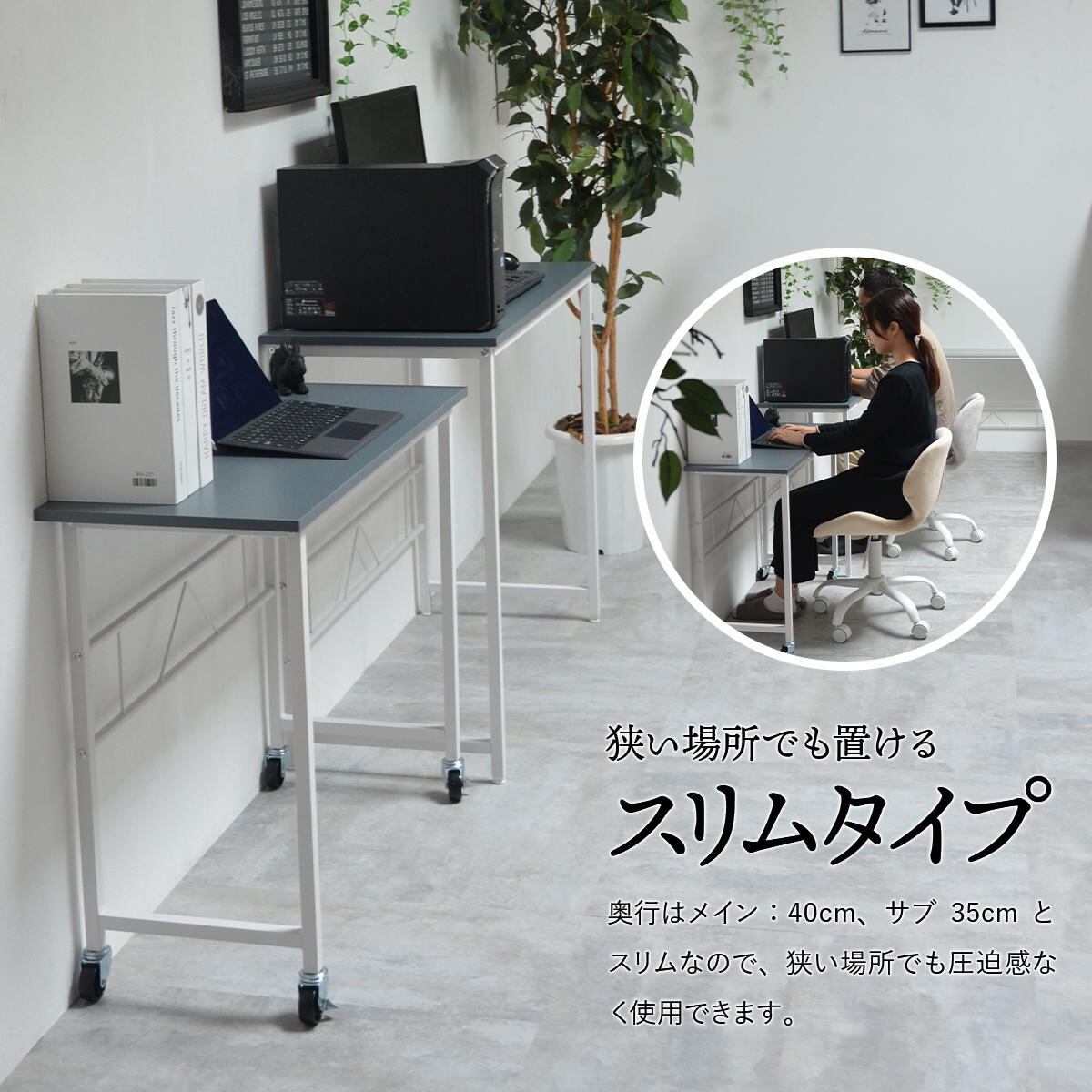 奥行が大サイズが(約)40cm、小サイズが(約)35cmとスリムなサイズ感で狭い場所にも設置しやすいサイズのネストデスクです。