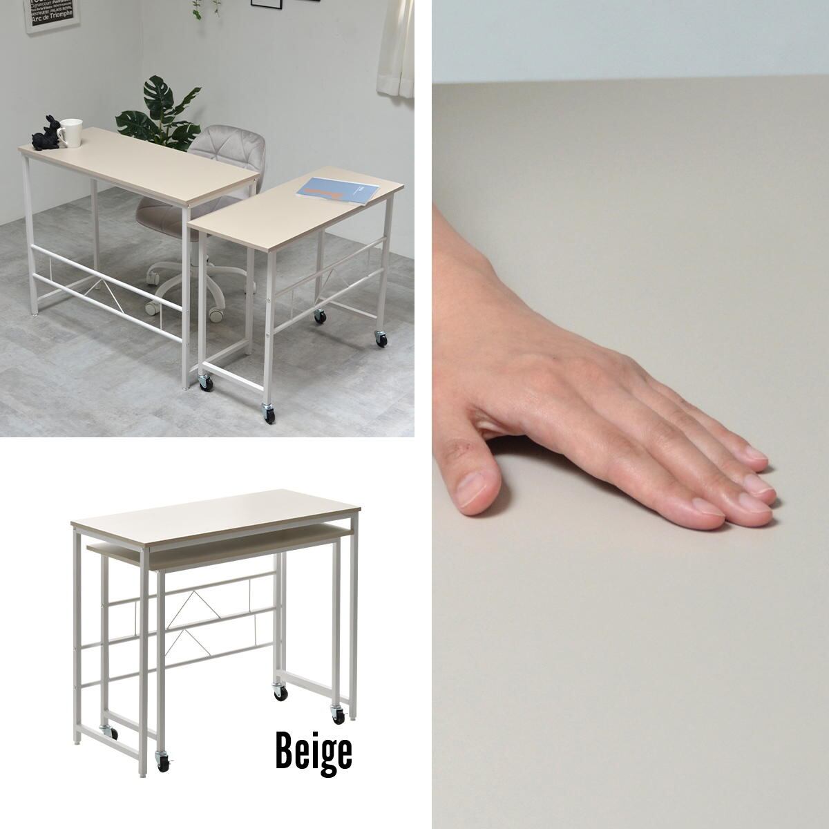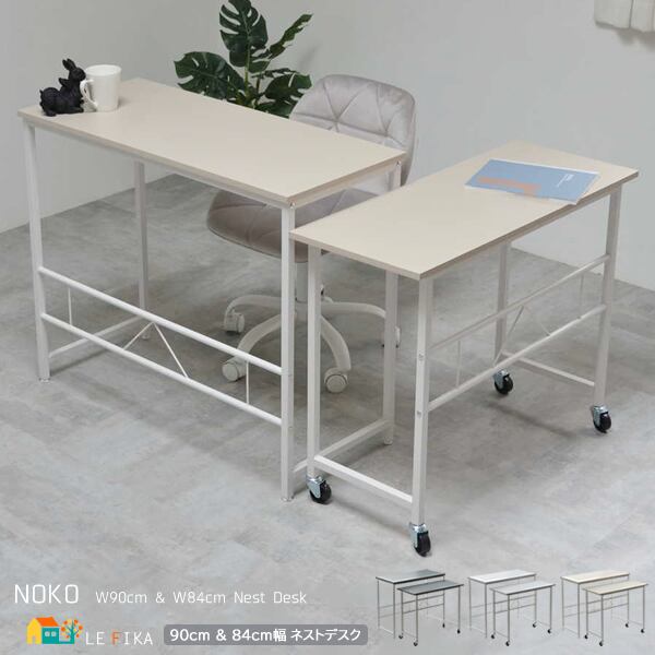 ネストデスク 90cm幅 84cm幅 ダークグレー ライトグレー ベージュ 大サイズデスク 小サイズデスク 大小2台組 オフィスデスク 書斎デスク リビングデスク 作業デスク 作業台 作業机 おすすめ おしゃれ モダン シンプル ベーシック パソコンデスク キャスター付き アジャスター付き L字デスク スリム コンパクト 省スペース