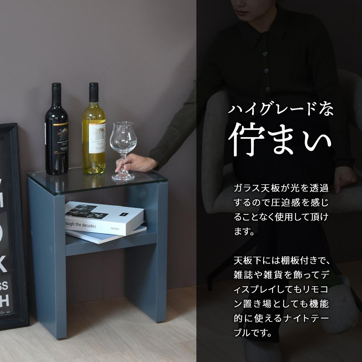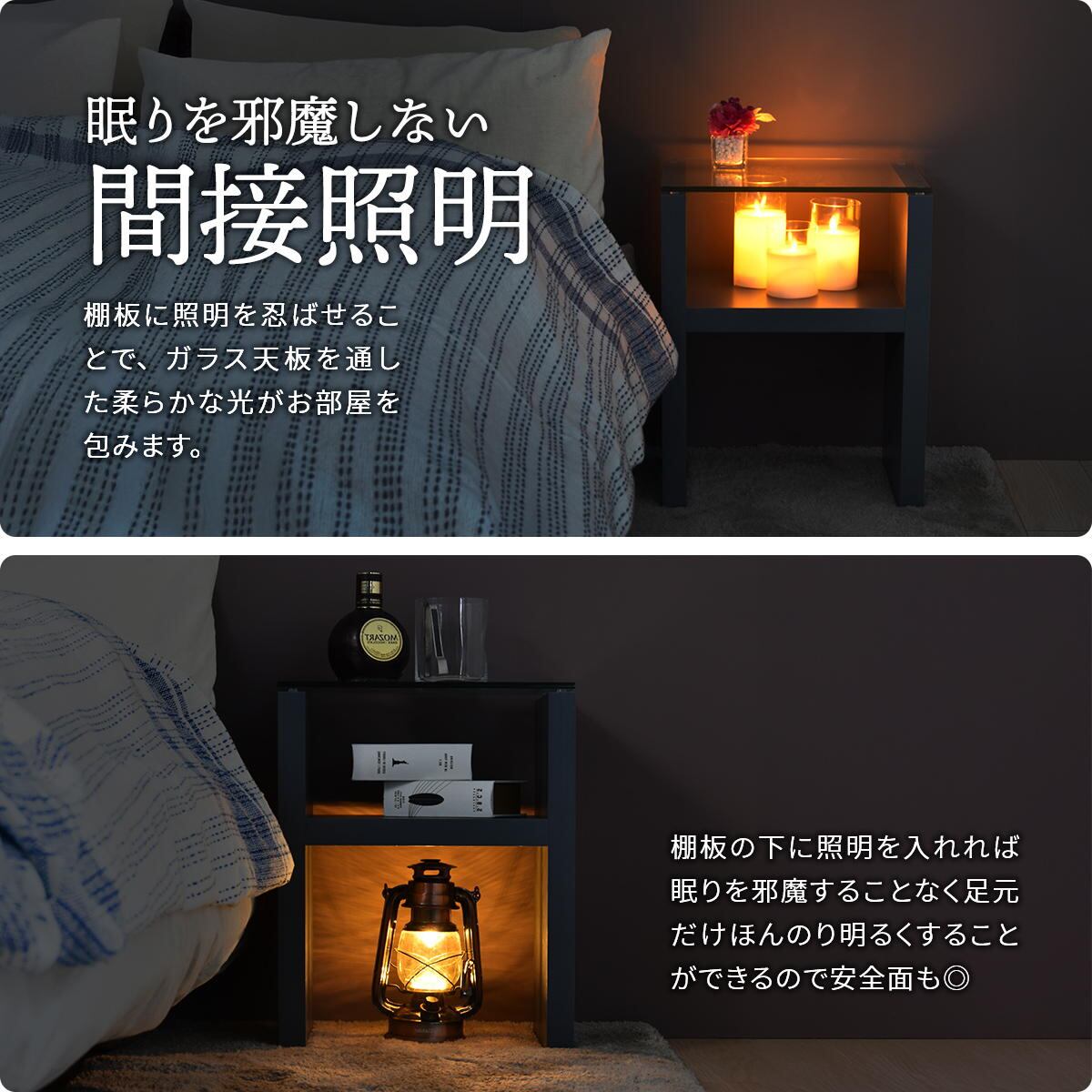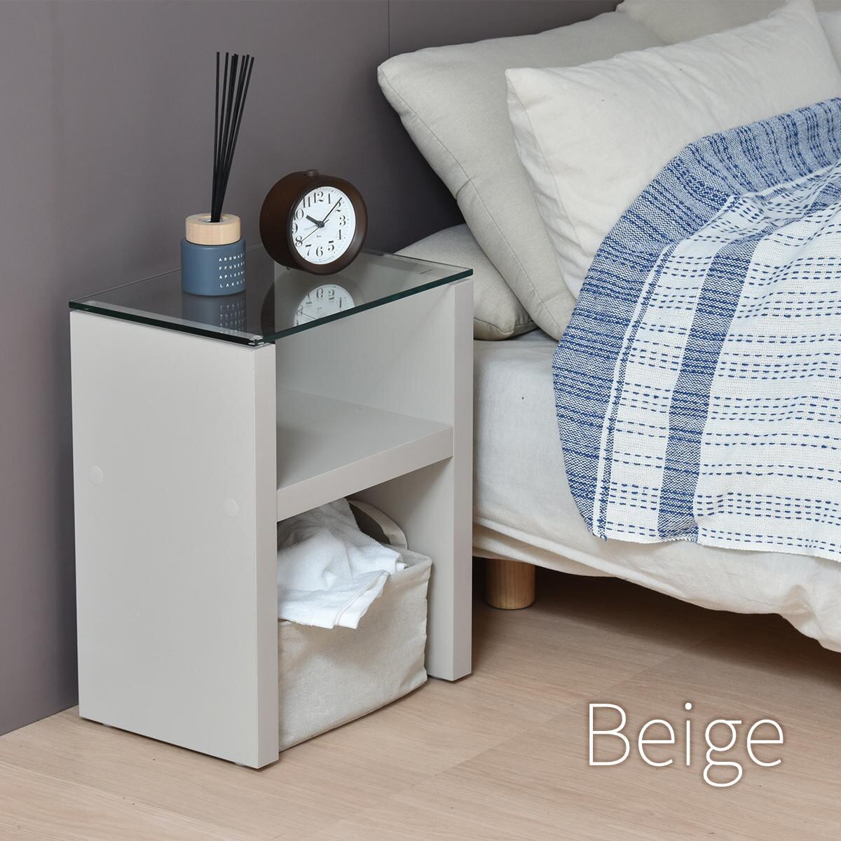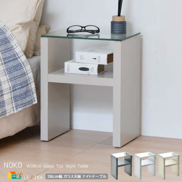 ナイトテーブル 38cm幅 ベージュ ライトグレー ダークグレー サイドテーブル ガラステーブル 強化ガラス ガラス天板 ソファサイド ベッドサイド 寝室テーブル 収納棚付き おすすめ おしゃれ 北欧 モダン スタイリッシュ シンプル ベーシック ガラス机 棚付きテーブル 収納付きテーブル ソファ横 ベッド横