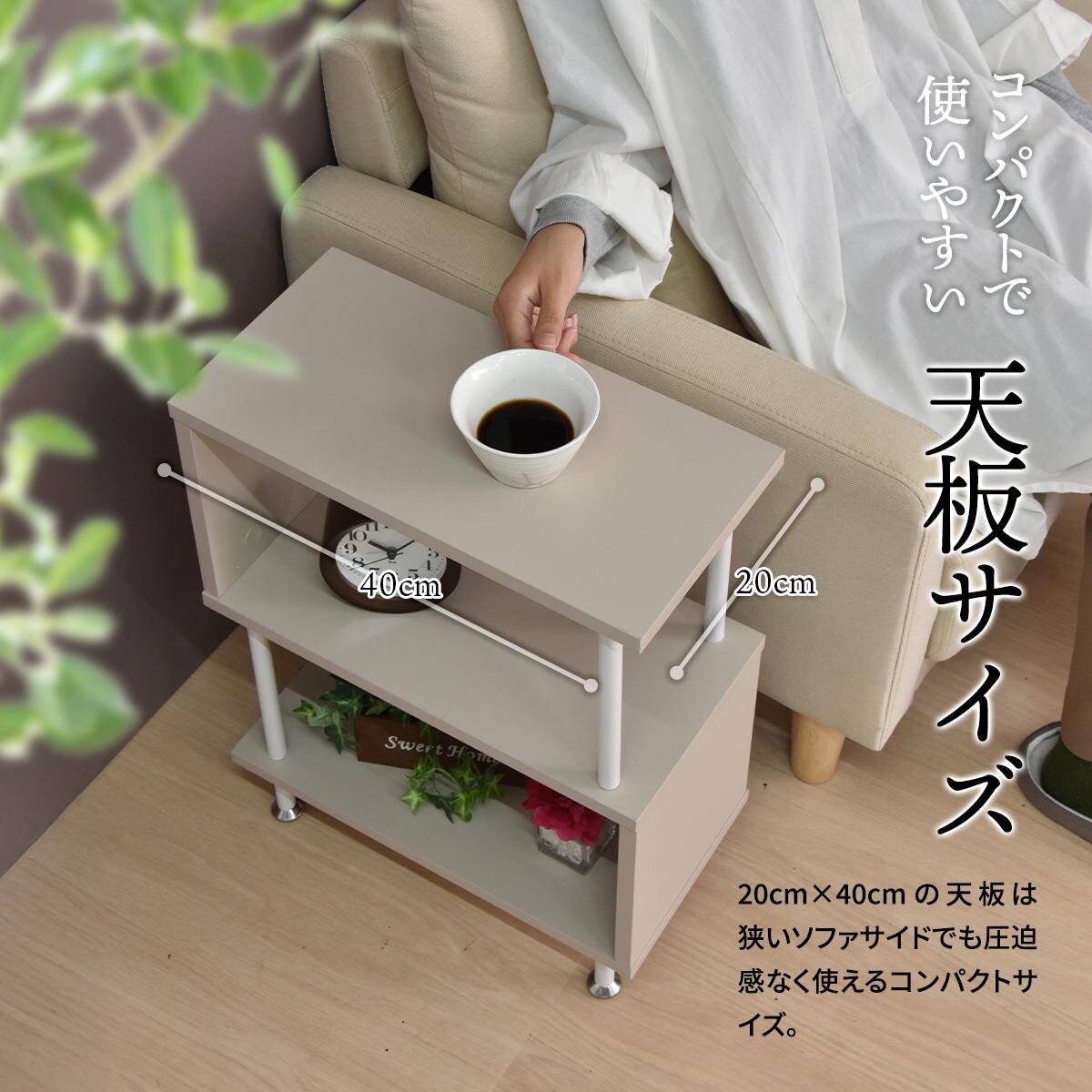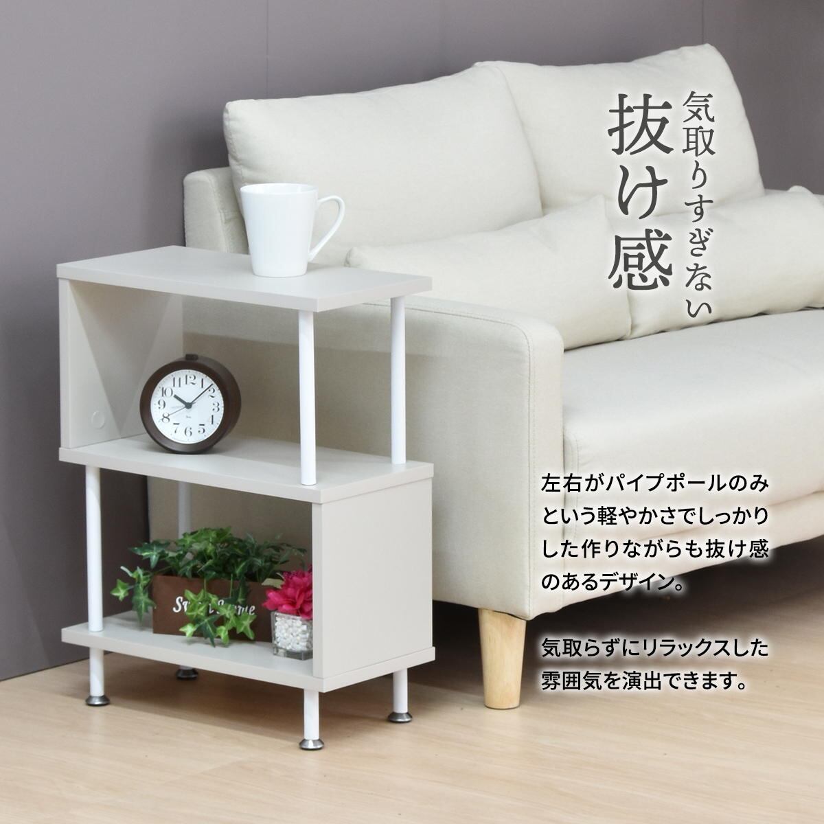 サイドテーブル 40cm幅 ベージュ ダークグレー ライトグレー S字型 5の字型 サイドラック 収納棚 ソファサイドテーブル ベッドサイドテーブル ディスプレイラック おすすめ おしゃれ 北欧 モダン スタイリッシュ シンプル ベーシック コンパクト 省スペース スリム 棚付きサイドテーブル 収納棚付き 収納ラック オープンラック リビング収納 ベッド横 ソファ横 テーブル 机