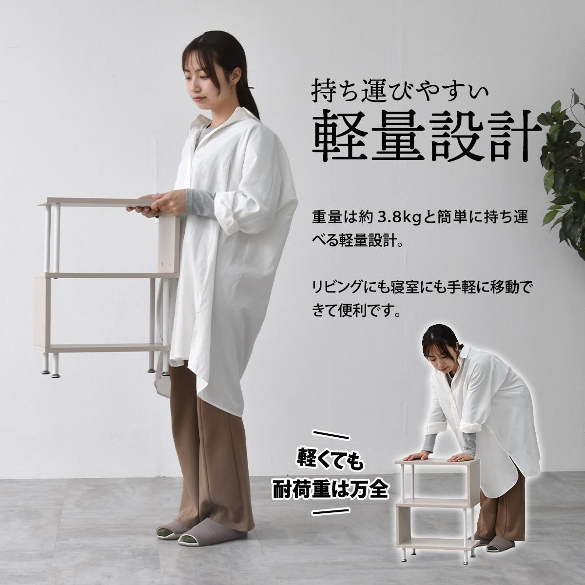 重量は(約)3.8kgの軽量設計で、掃除や模様替えの際の移動も簡単です。