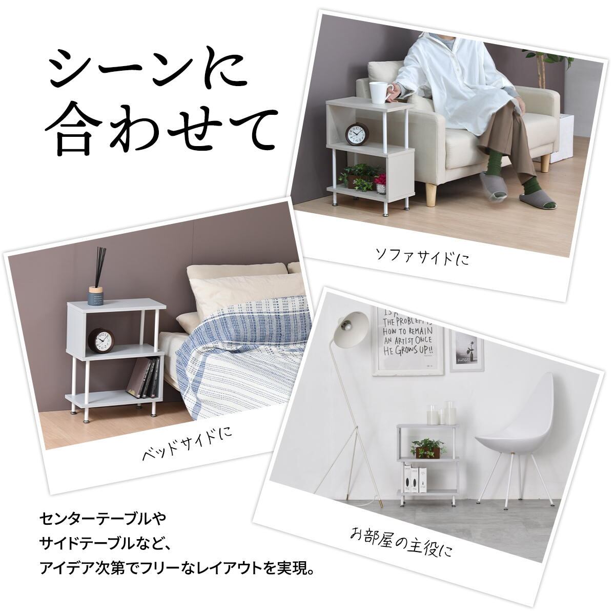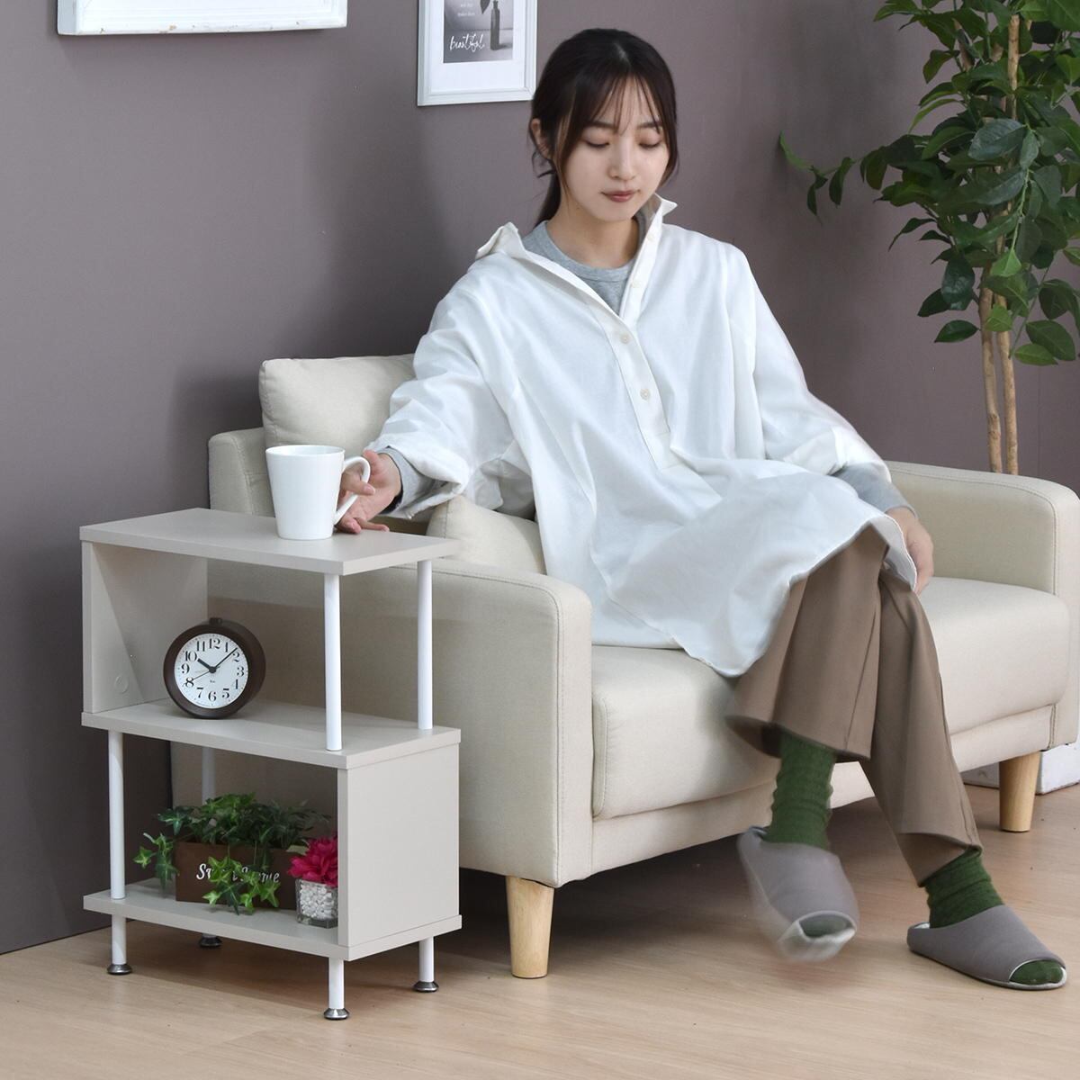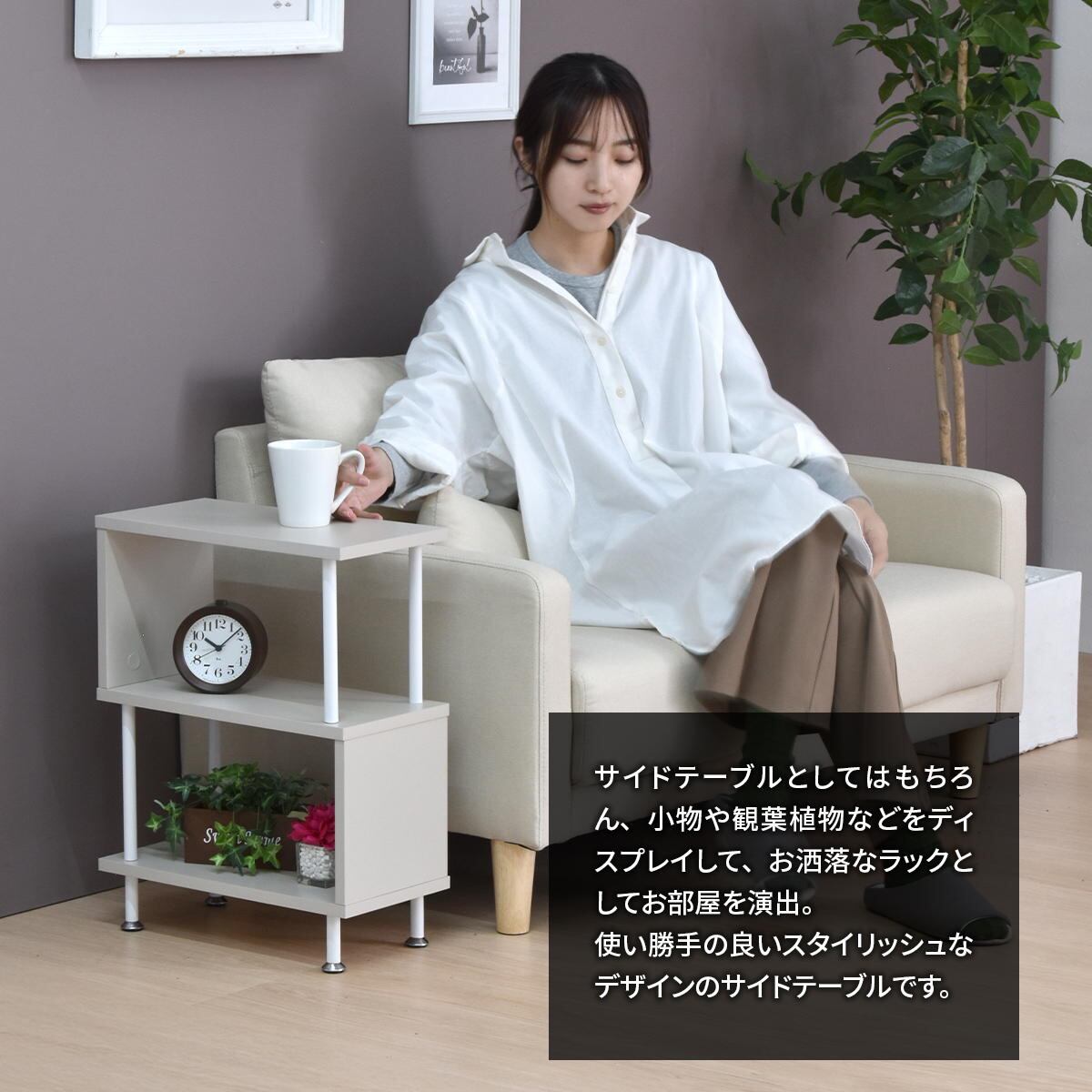 サイドテーブルとしての使用はもちろん、小物や観葉植物などをディスプレイして、お洒落なラックとしての使用もおすすめです。