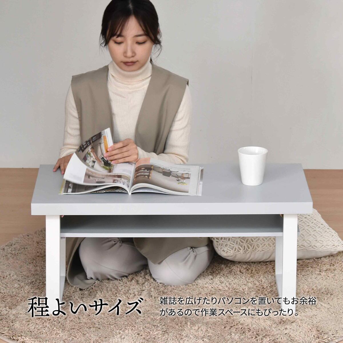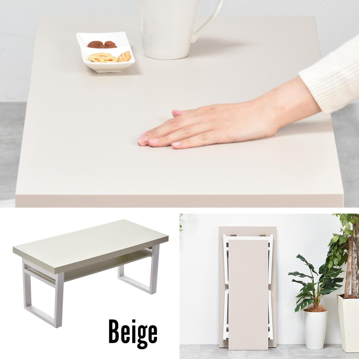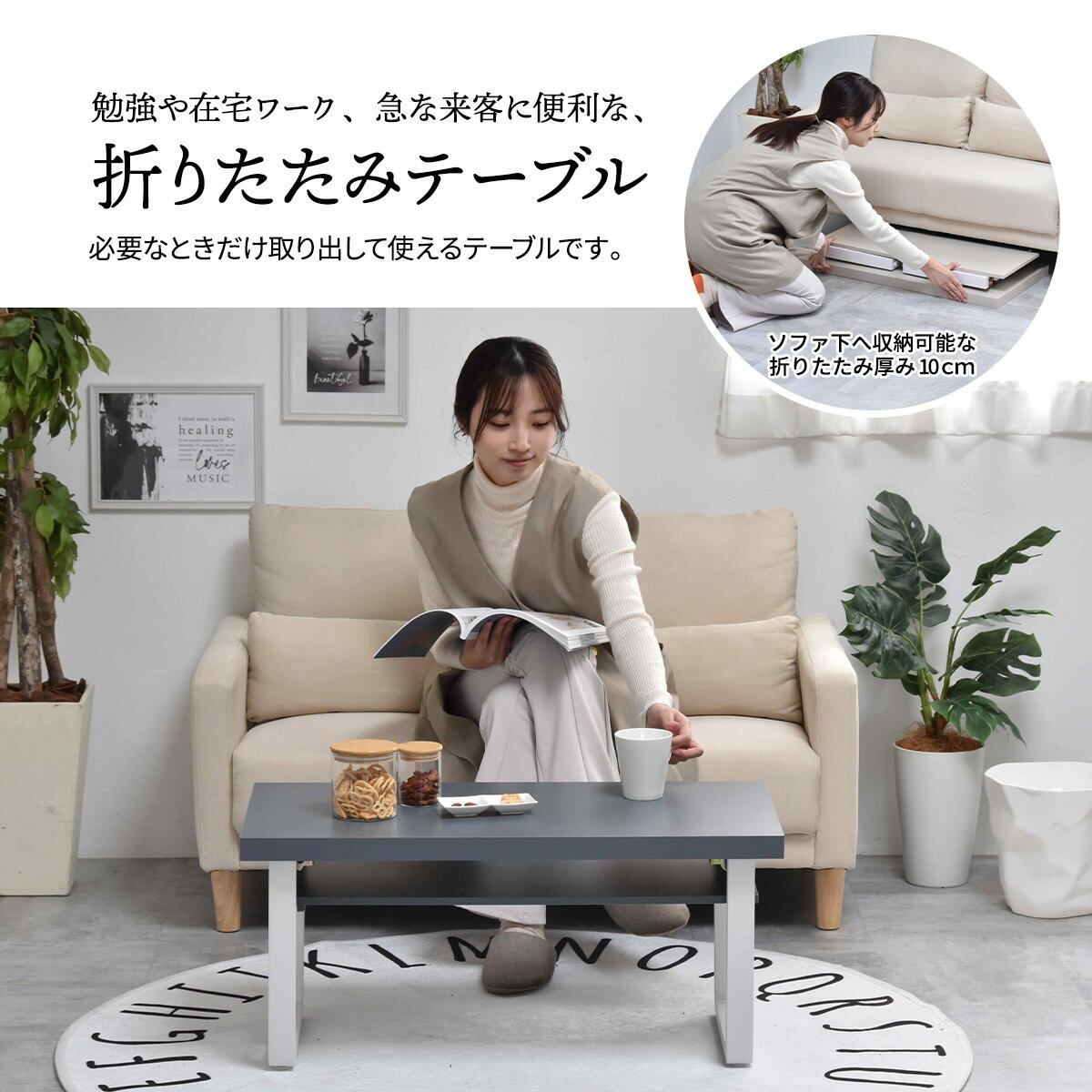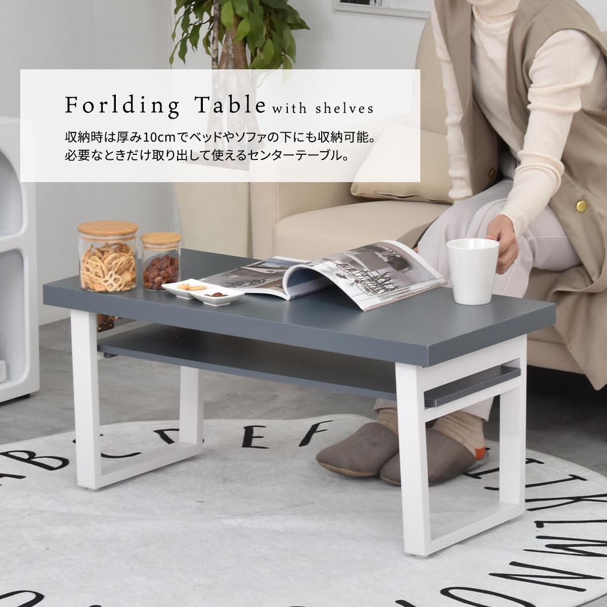 折り畳みテーブル 80cm幅 ベージュ ダークグレー ライトグレー 折れ脚テーブル おすすめ おしゃれ 北欧 モダン スタイリッシュ シンプル ベーシック 机 作業テーブル センターテーブル 折り畳みテーブル 作業机 作業台 収納棚付きテーブル 中棚付き 折り畳み式テーブル コンパクト 省スペース スリム コンパクト収納 サブテーブル コーヒーテーブル