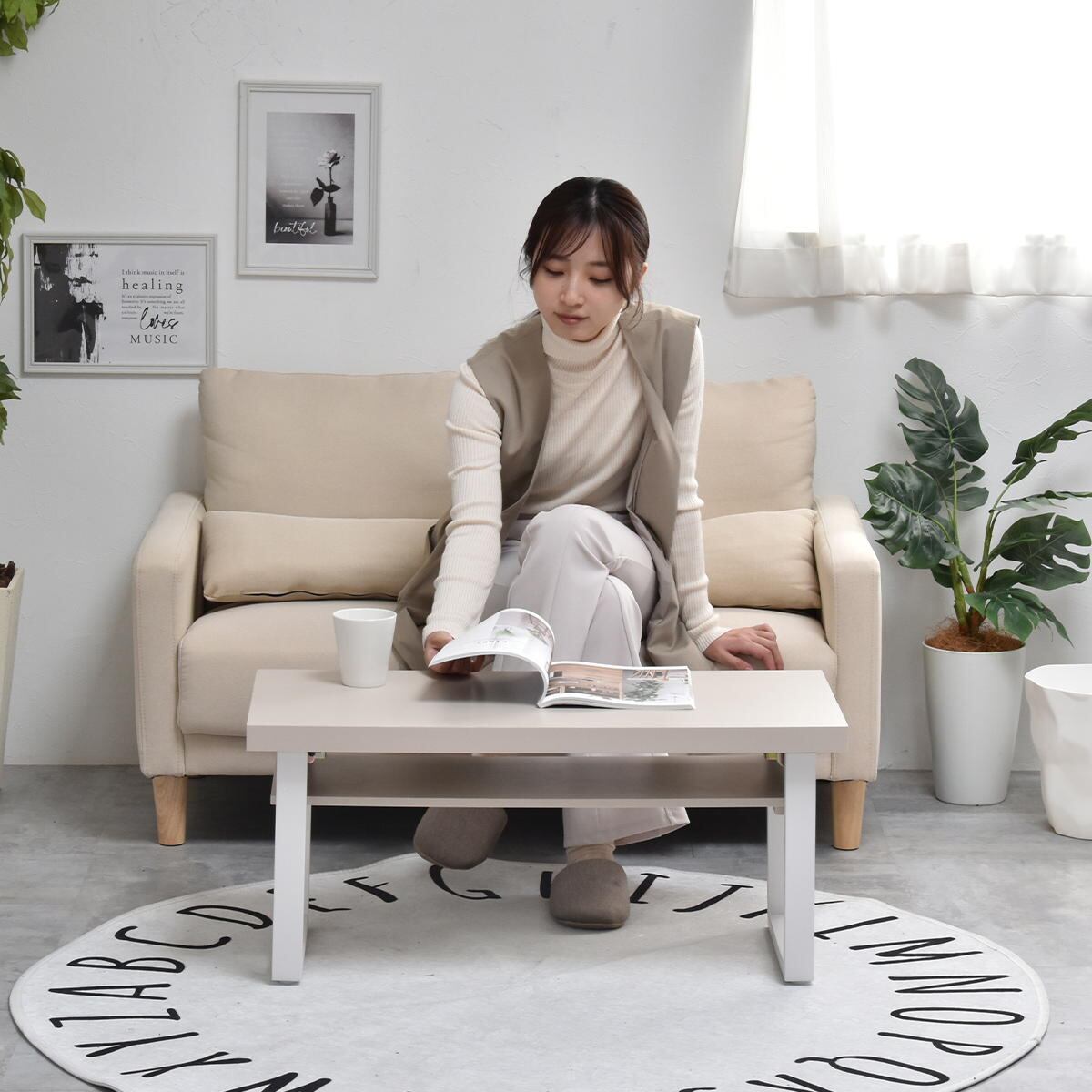 天板下には取り外しが可能な中棚を備えており、雑誌やリモコン、ノートパソコンなどを収納することができます。