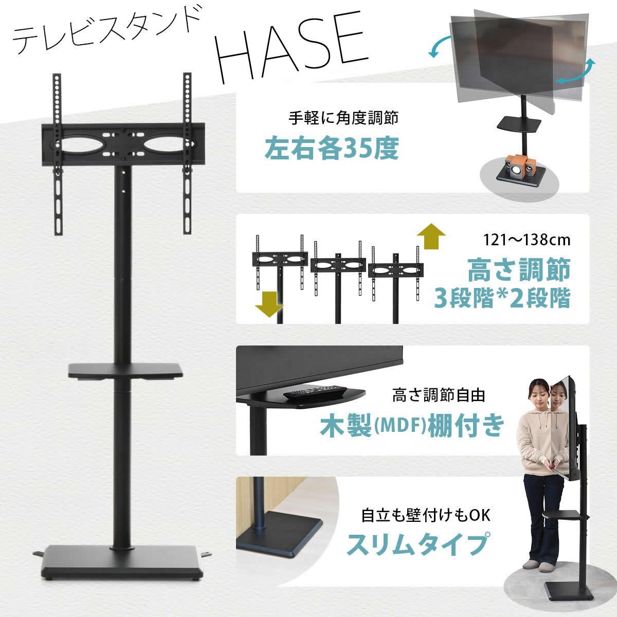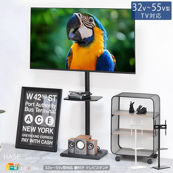 テレビスタンド 49.5cm幅 ブラック ホワイト 黒 白 棚板付きテレビスタンド 壁寄せテレビスタンド おすすめ おしゃれ スタイリッシュ シンプル ベーシック 省スペース スリム コンパクト テレビラック TVスタンド 左右スイング スイングテレビスタンド 壁寄せTVスタンド