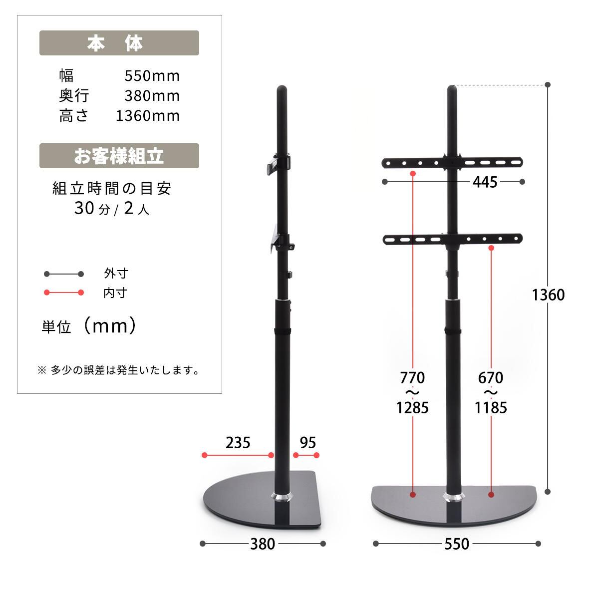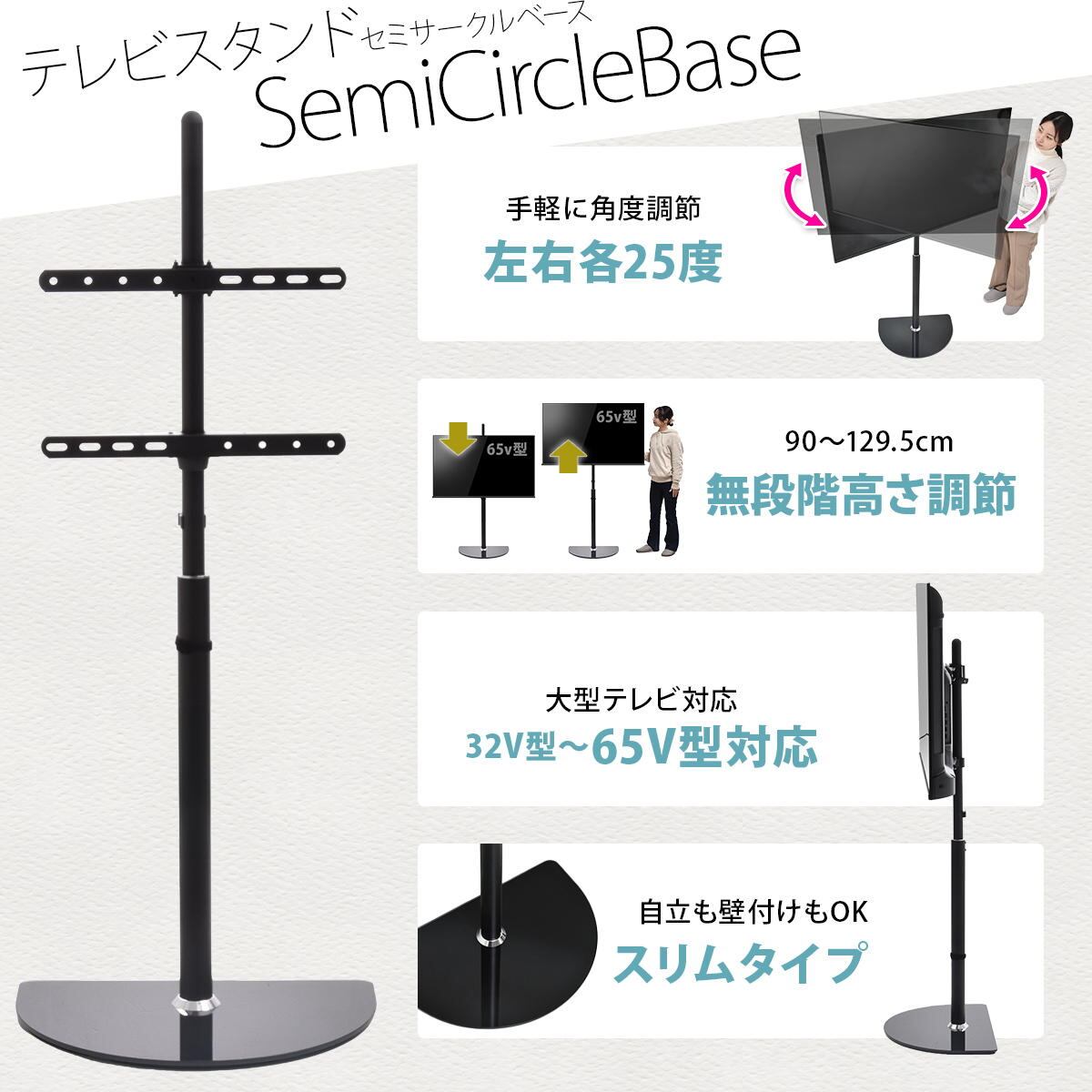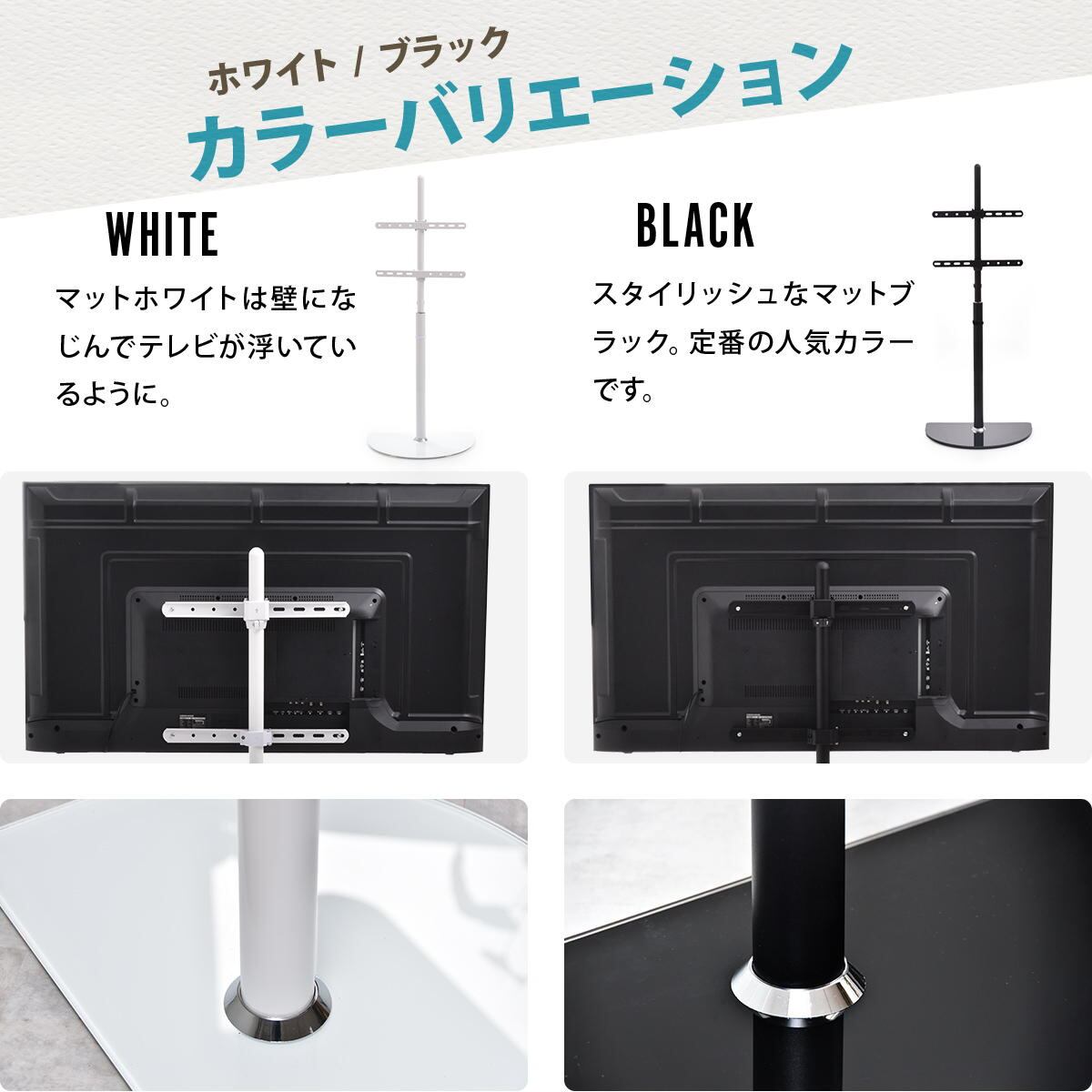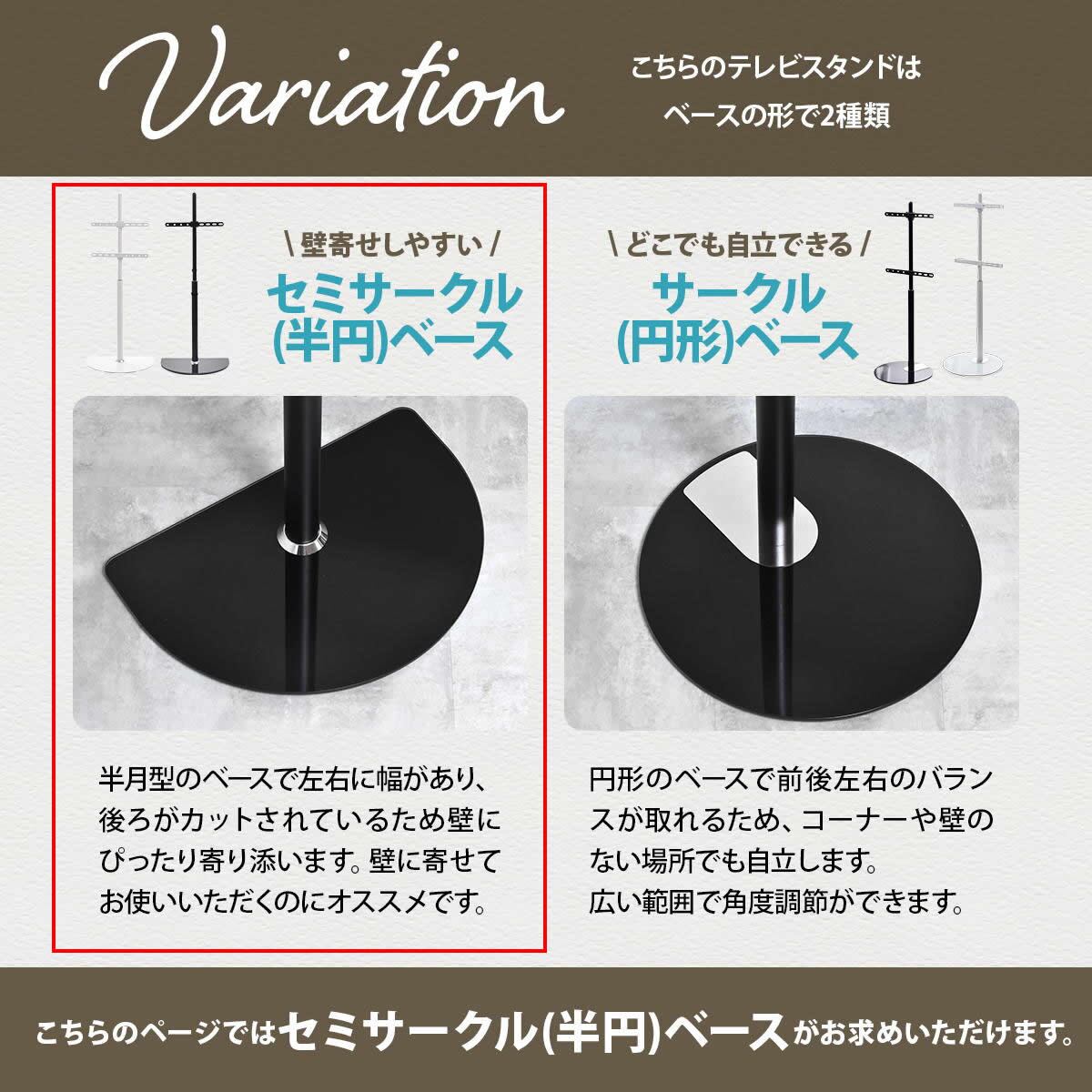 テレビスタンド 55cm幅 ブラック ホワイト 黒 白 半円型台テレビスタンド 壁寄せテレビスタンド おすすめ おしゃれ スタイリッシュ シンプル ベーシック 省スペース スリム コンパクト テレビラック TVスタンド 左右スイング 左右スイングテレビスタンド 壁寄せTVスタンド 半円型ベース
