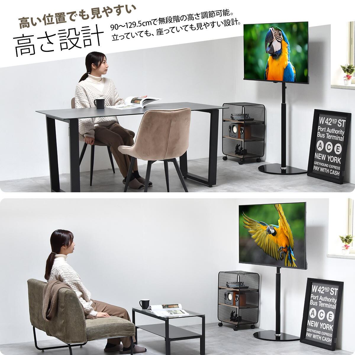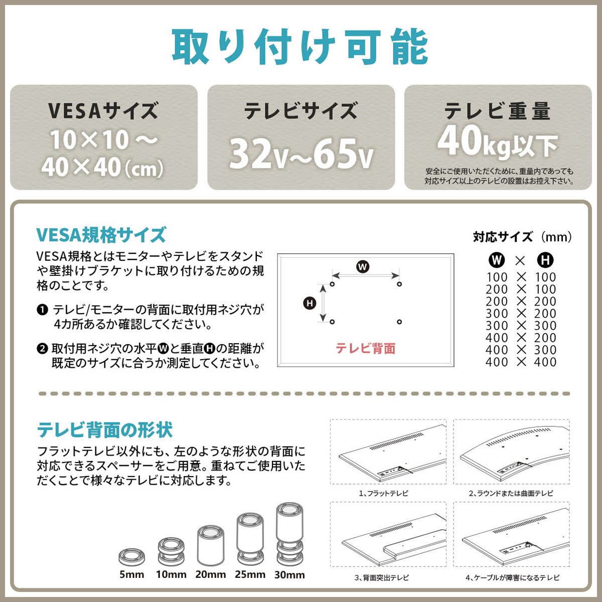 32型〜65型までのテレビに対応した本体耐荷重(約)40kgの壁寄せタイプのテレビスタンドです。