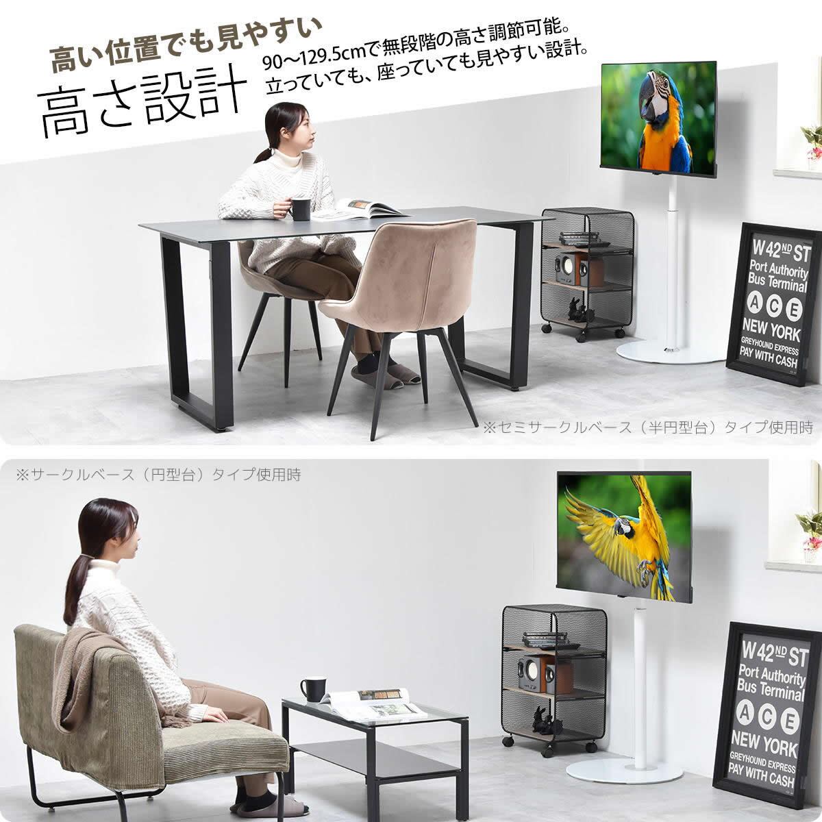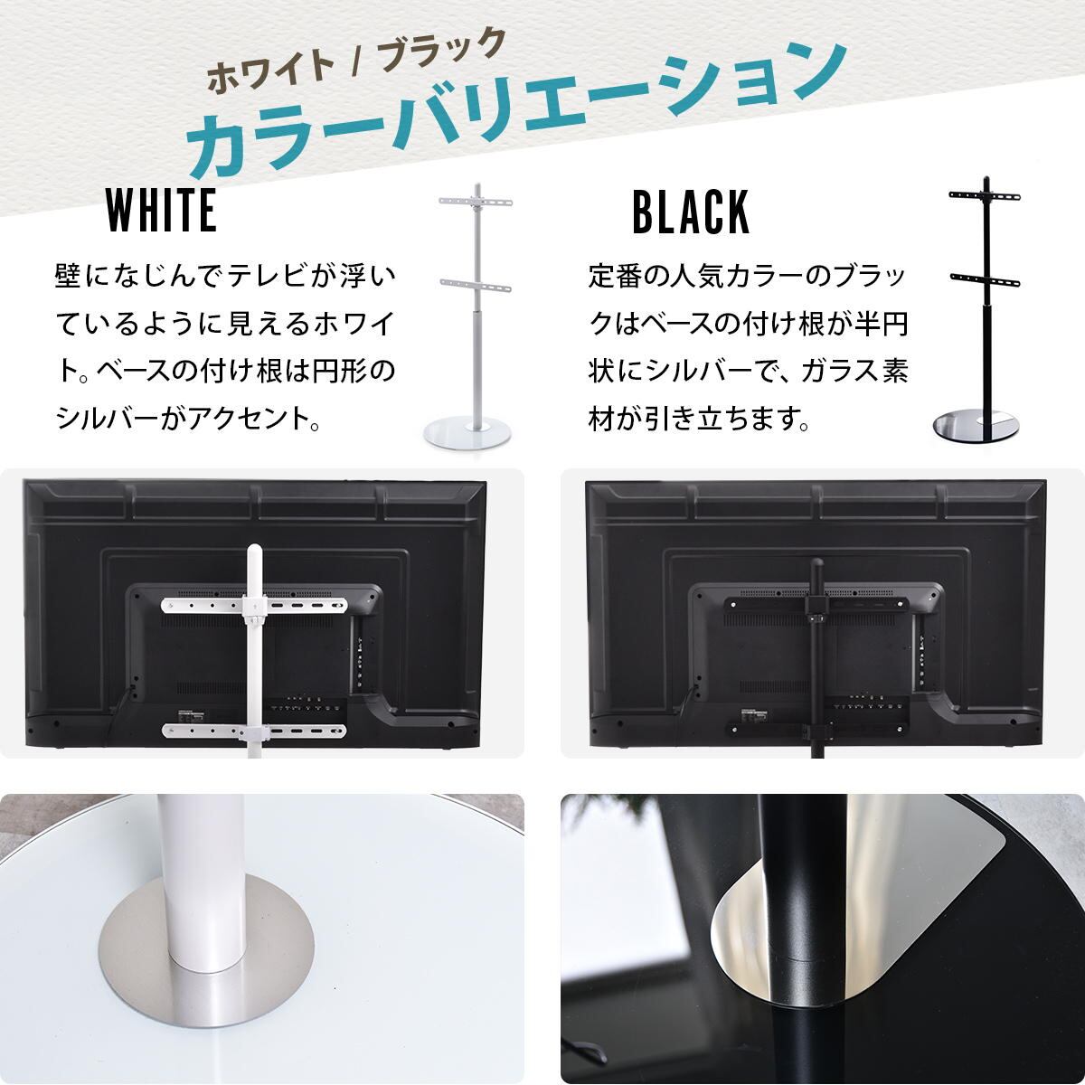 テレビスタンド 48cm幅 ブラック ホワイト 黒 白 円型台テレビスタンド 円型ベーステレビスタンド 円型土台 丸形土台 円形土台 丸型土台 おすすめ おしゃれ スタイリッシュ シンプル ベーシック 省スペース スリム コンパクト テレビラック TVスタンド 左右スイング 左右スイングテレビスタンド 円型ベース