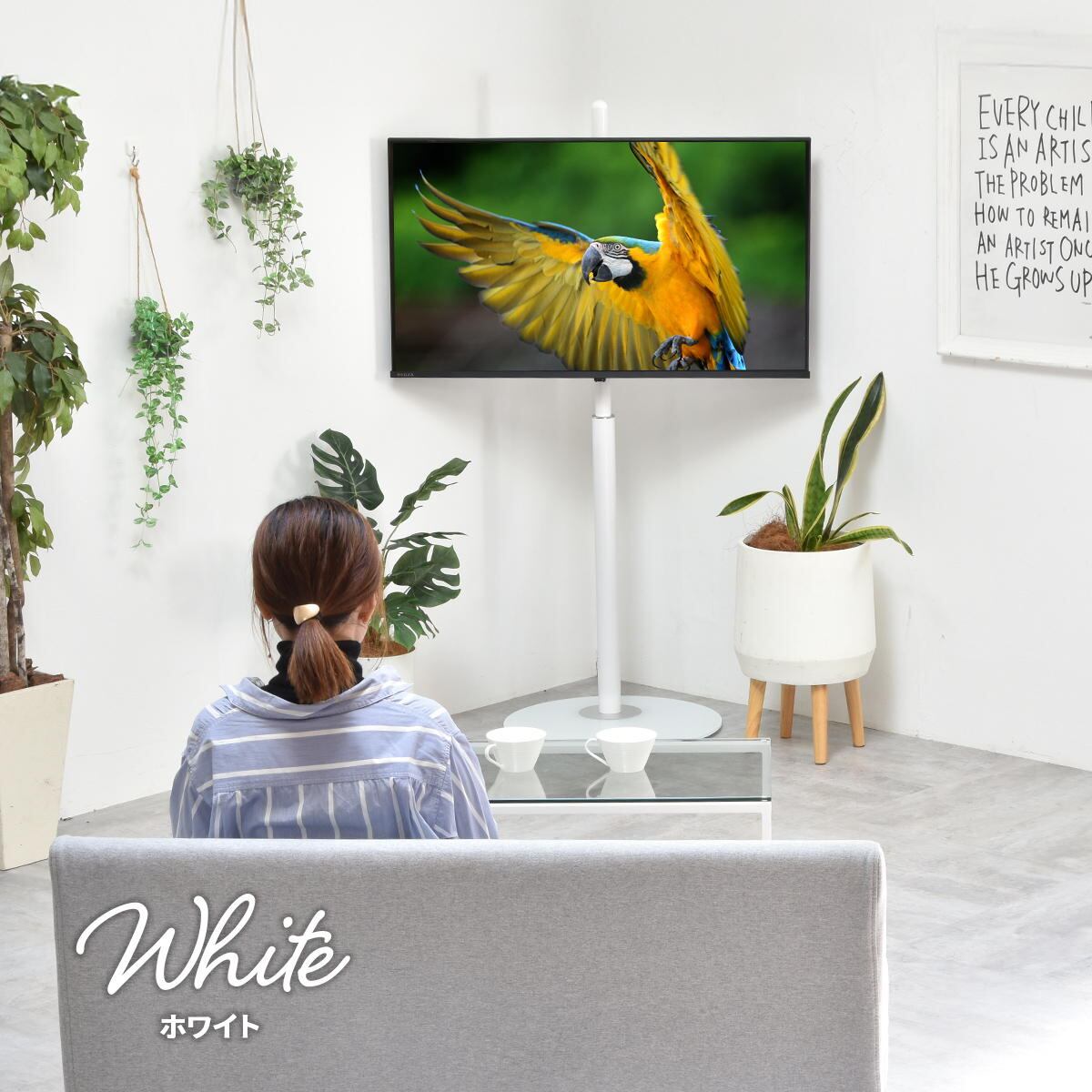 スイング機能付きで左右90度で角度を変えることができ、お好みの角度でテレビをご覧いただけます。