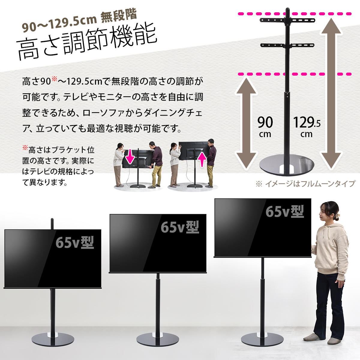 32型〜65型までのテレビに対応した本体耐荷重(約)40kgの円型台のテレビスタンドです。