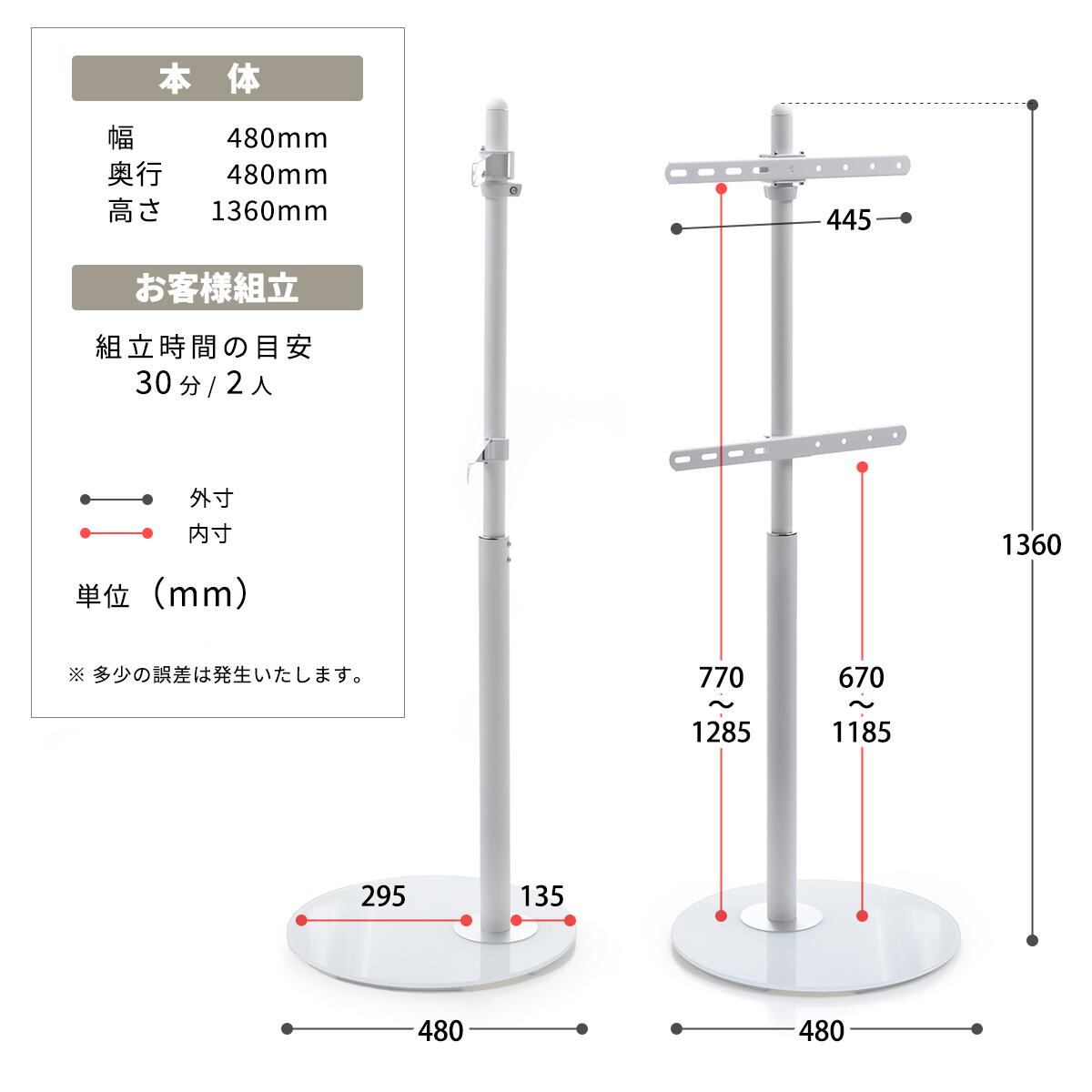 ■商品サイズ(約):幅48cm、奥行48cm、高さ136cm