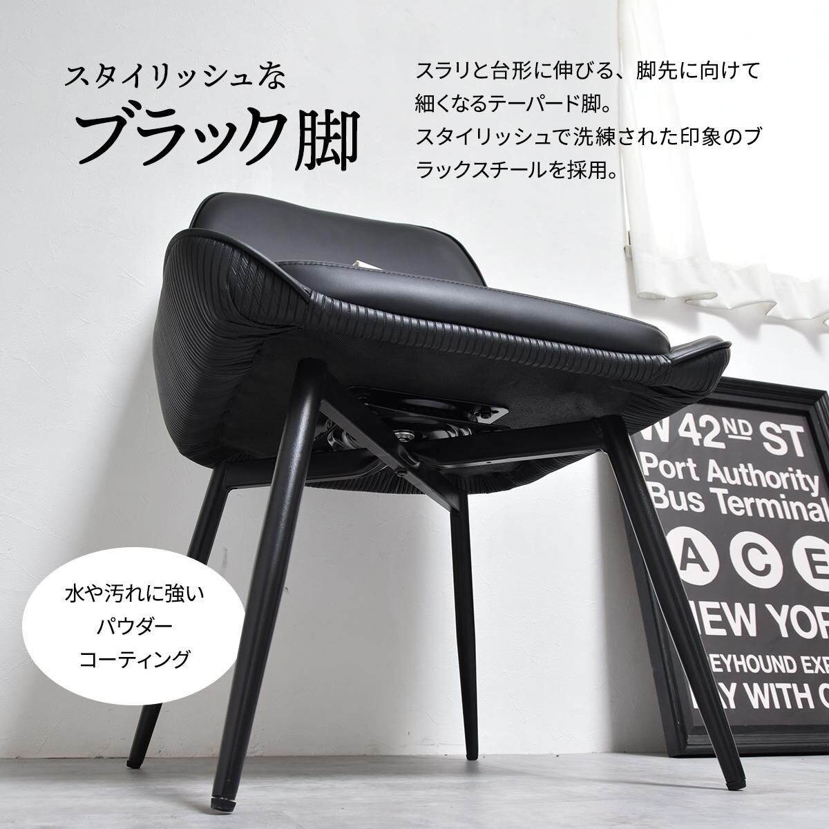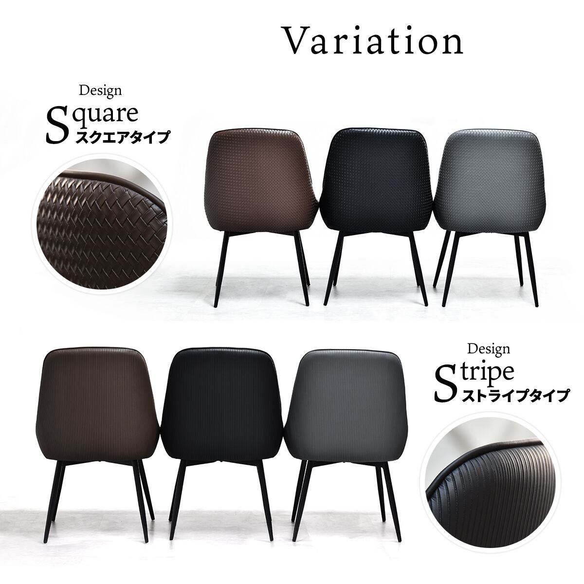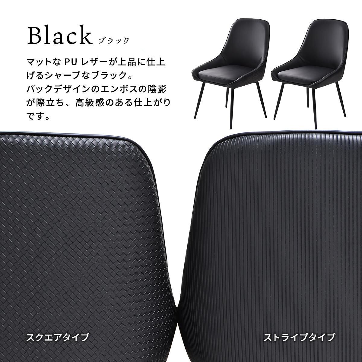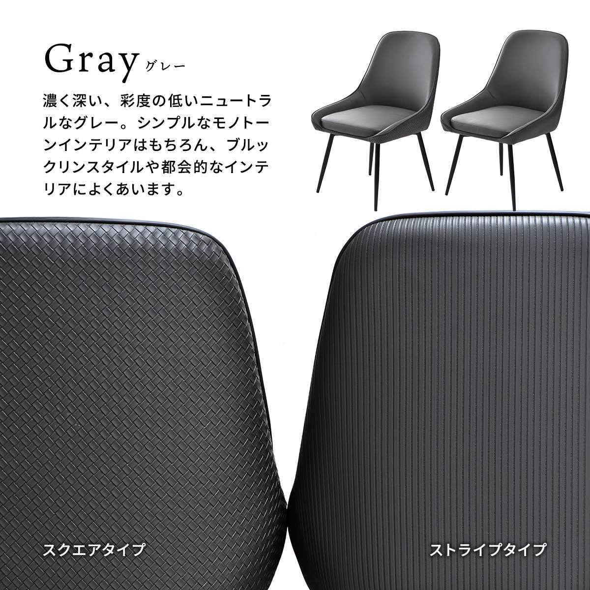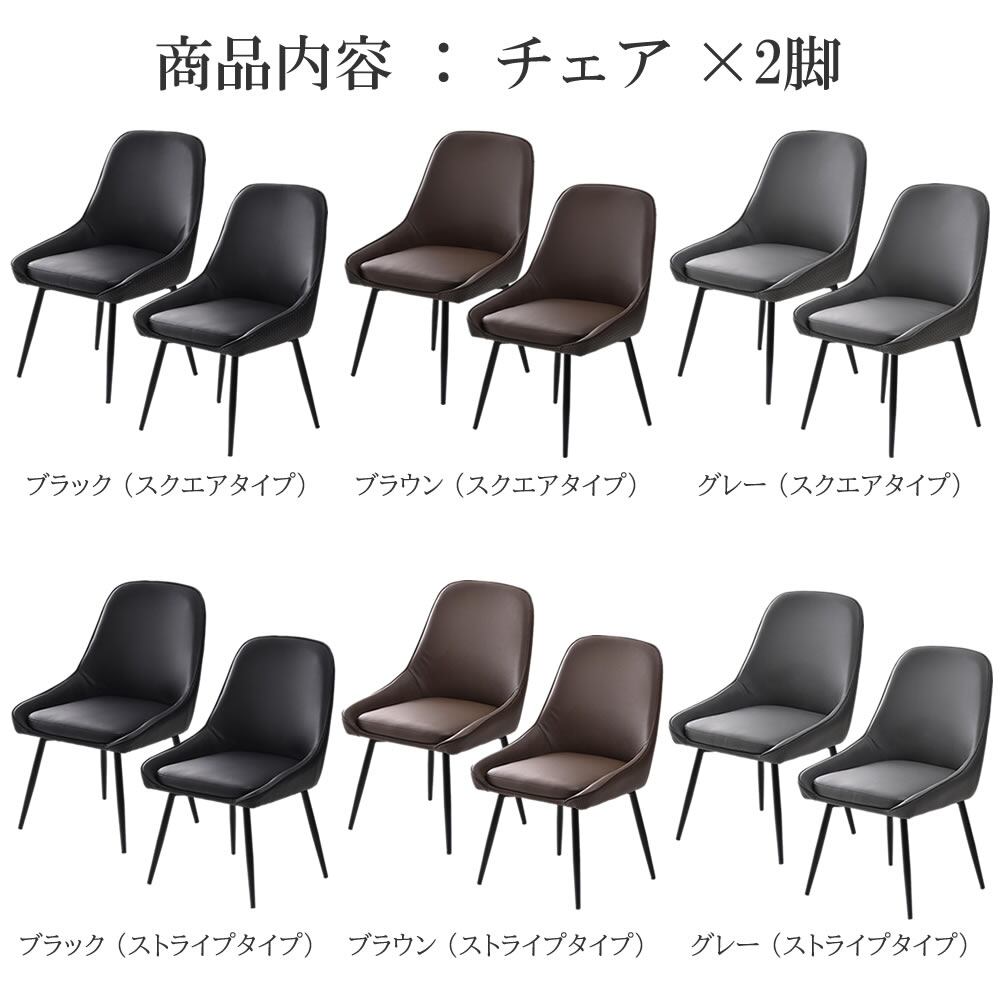 ダイニングチェア 2脚セット 53.5cm幅 ブラック ブラウン グレー スクエアタイプ ストライプタイプ 合皮チェア PUレザー 合成皮革 おすすめ おしゃれ スタイリッシュ スチール脚 アームレスチェア 幅53.5cm 奥行58cm 高さ83cm 座面高43cm 回転式 回転椅子 回転式チェアー