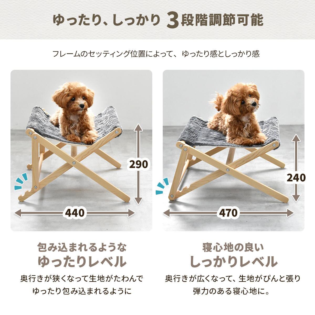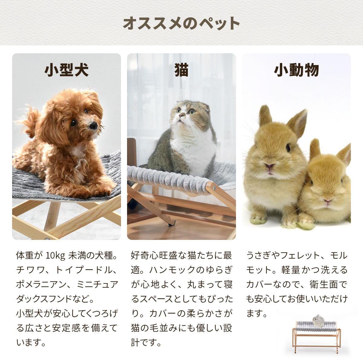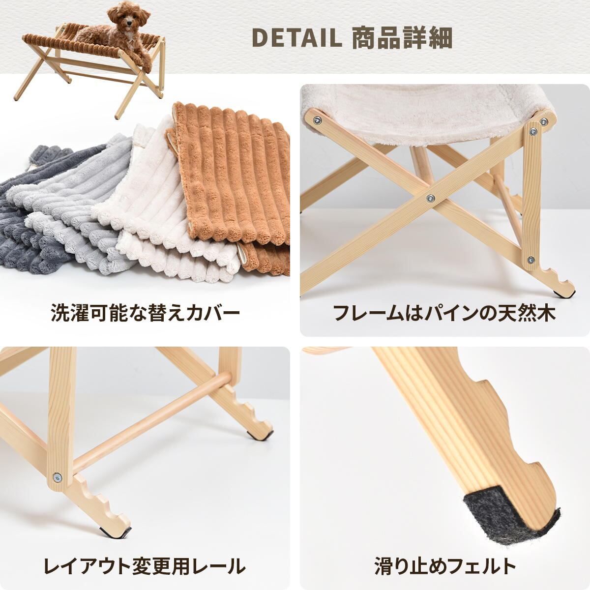 ペット用ハンモック 55.5cm幅 ブラウン ベージュ ダークグレー ライトグレー ペット用ベッド 折り畳みハンモック 犬用ハンモック 猫用ハンモック ペット用折り畳みベッド おすすめ おしゃれ 北欧 モダン スタイリッシュ 天然木使用 アウトドア キャンプ 旅行 犬用 猫用 ペット用 ハンモック 簡易ベッド