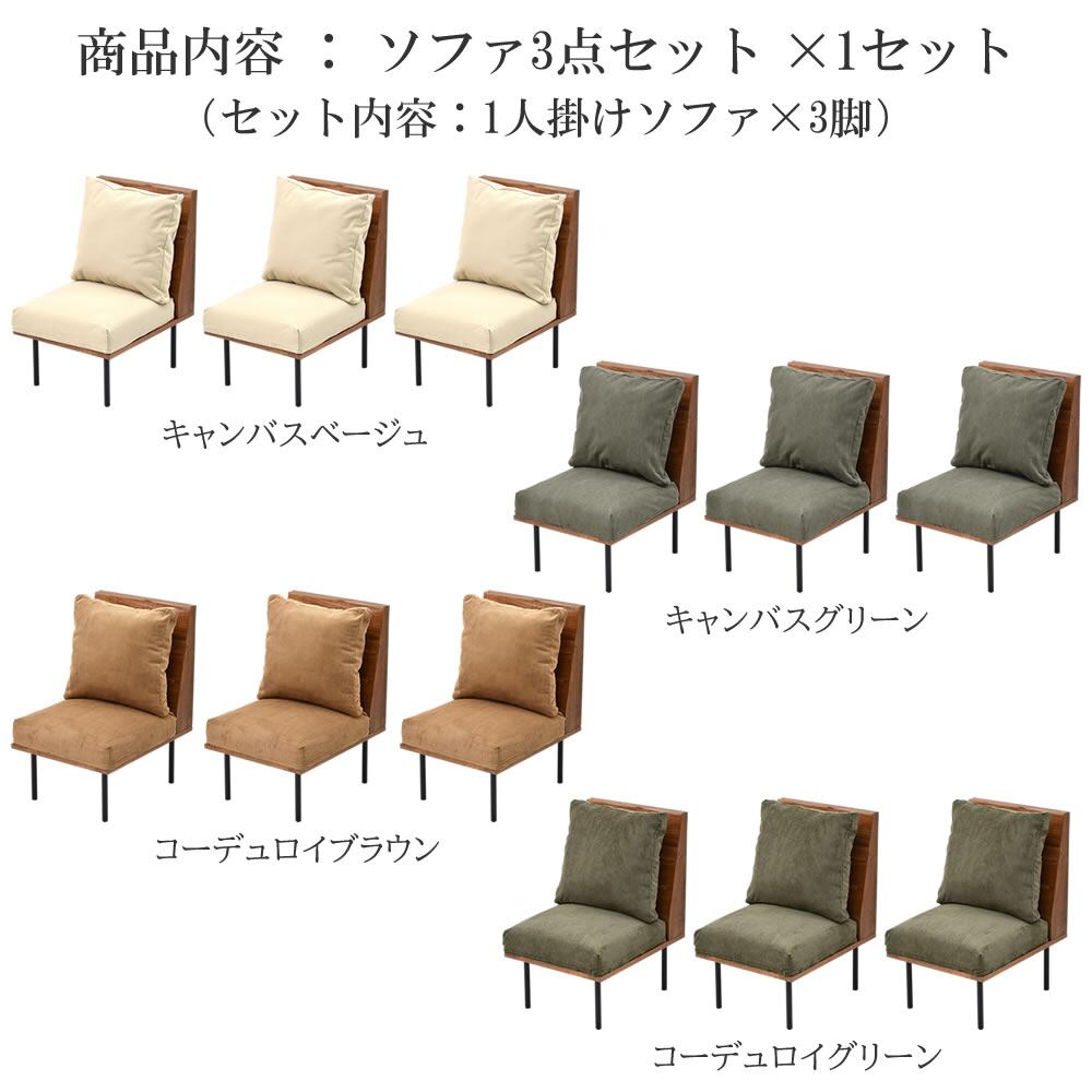 1人掛けソファ 3脚セット 156cm幅 104cm幅 52cm幅 3人掛けソファ 2人掛けソファ 三人用ソファ 二人用ソファ 1人用ソファ 一人掛けソファ キャンバスベージュ キャンバスグリーン コーデュロイブラウン コーデュロイグリーン 組み合わせ家具 おすすめ おしゃれ 北欧 モダン スタイリッシュ アームレスソファ ファブリックソファ コーデュロイソファ 脚取外し可能 パーソナルソファ ローソファ フロアソファ コンパクト 省スペース スチール脚 天然木使用