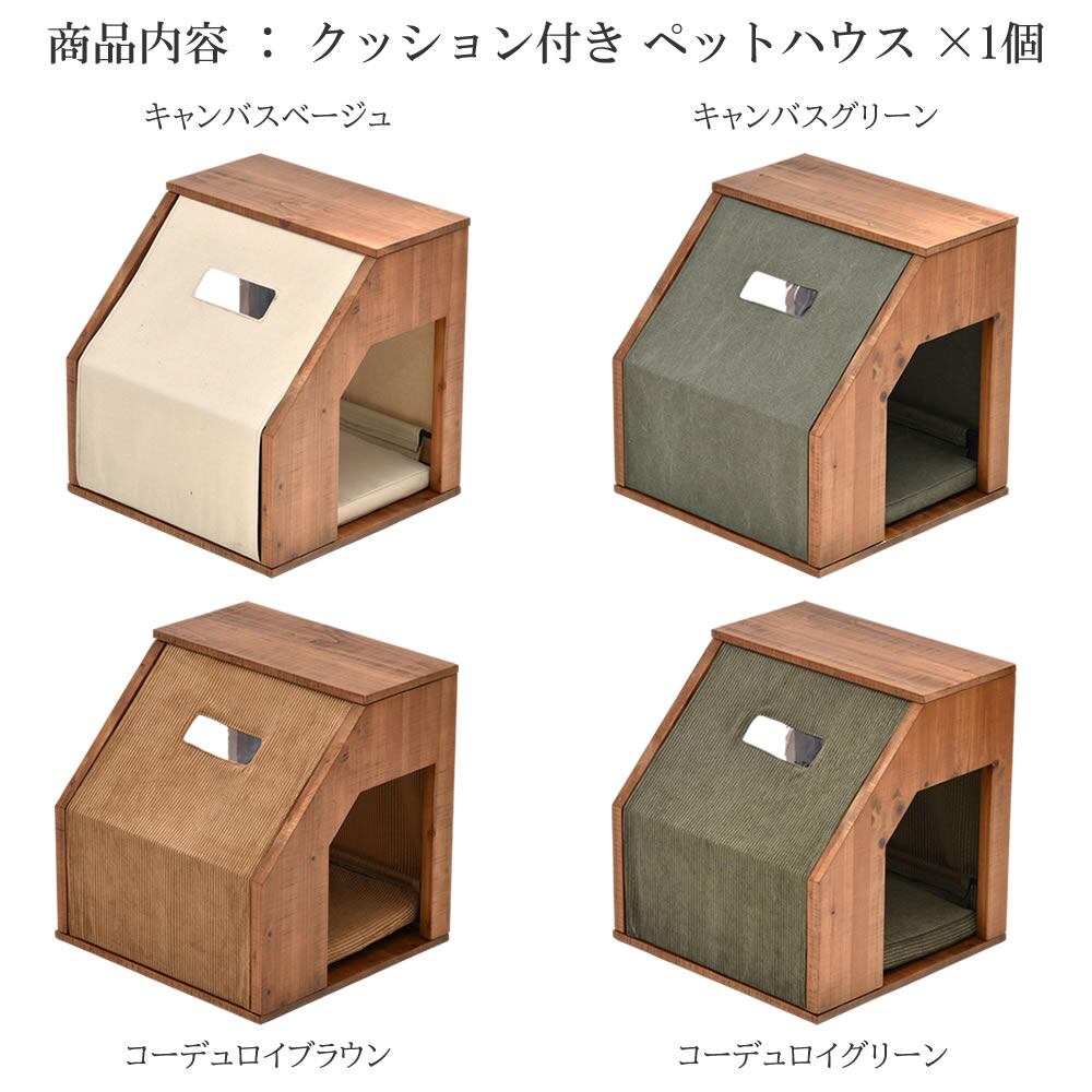 ペットハウス 46.5cm幅 キャンバスベージュ キャンバスグリーン コーデュロイブラウン コーデュロイグリーン ドッグハウス キャットハウス おすすめ おしゃれ 北欧 モダン スタイリッシュ 洗えるカバー 天然木使用 サイドテーブル ソファサイドテーブル 犬の部屋 猫の部屋 カバー洗濯可能