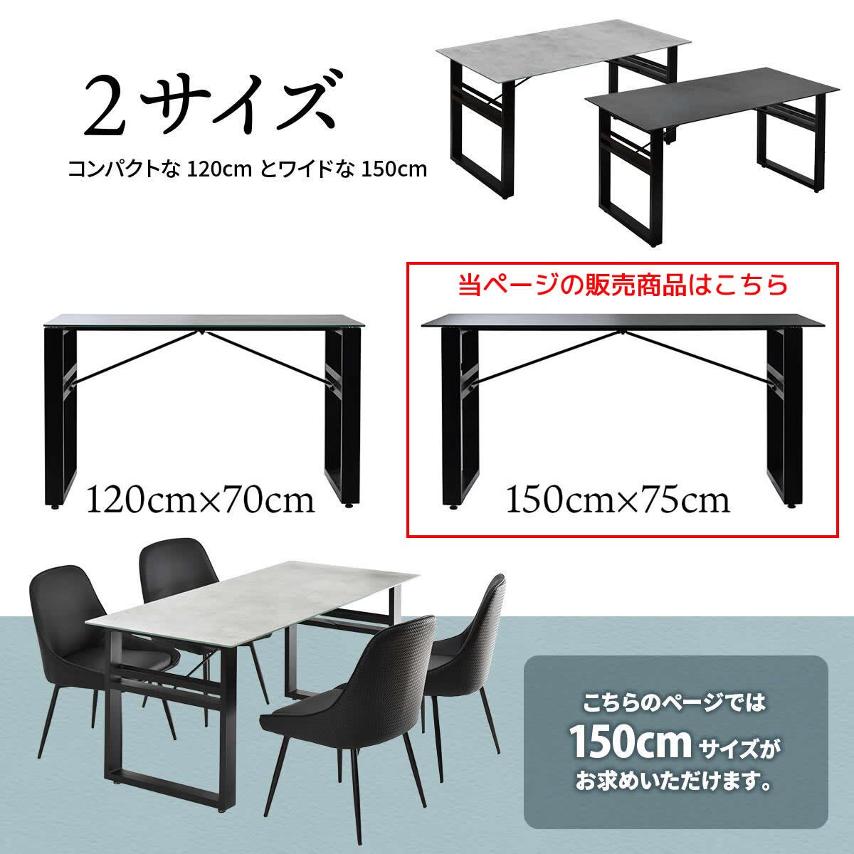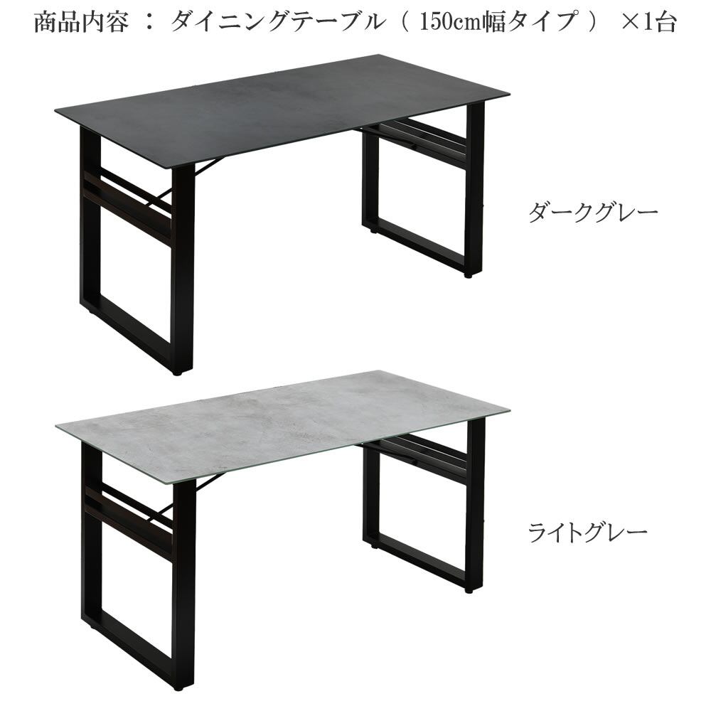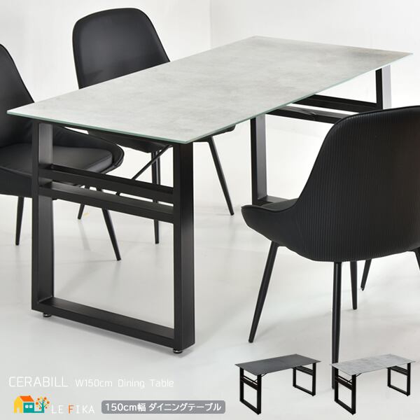 天板ガラスの表面にセラミック焼き付け加工を施した150cm幅のダイニングテーブル1台単品です。