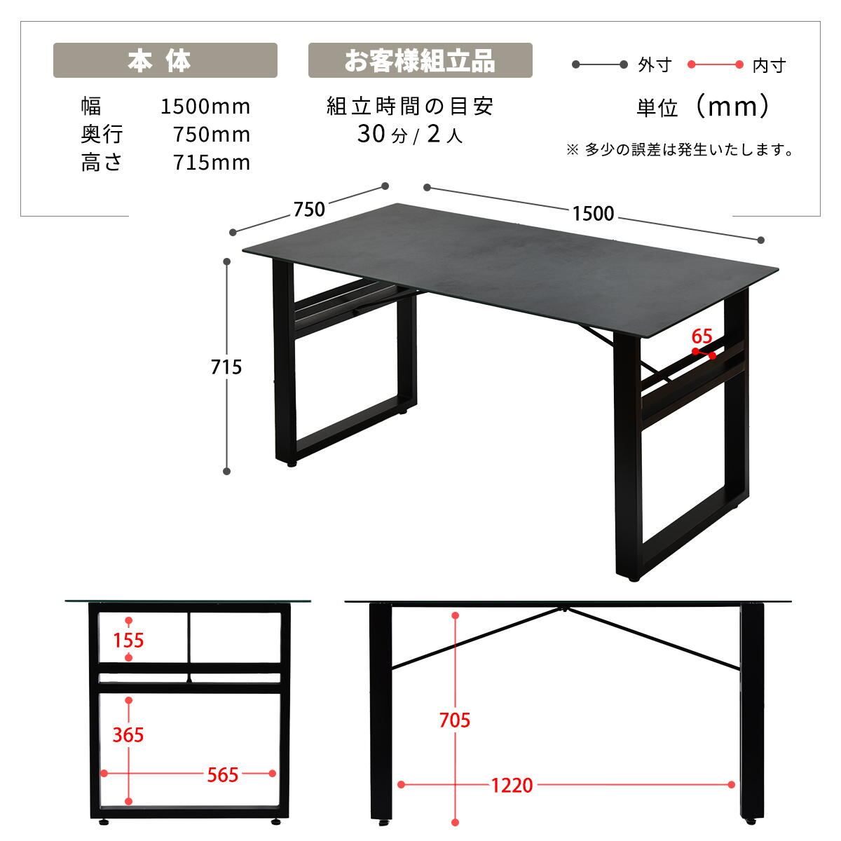 ■商品サイズ(約):幅150cm、奥行75cm、高さ71.5cm