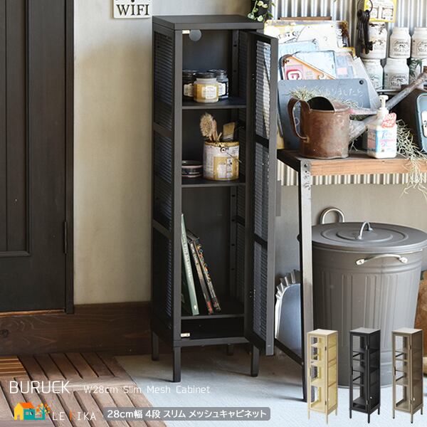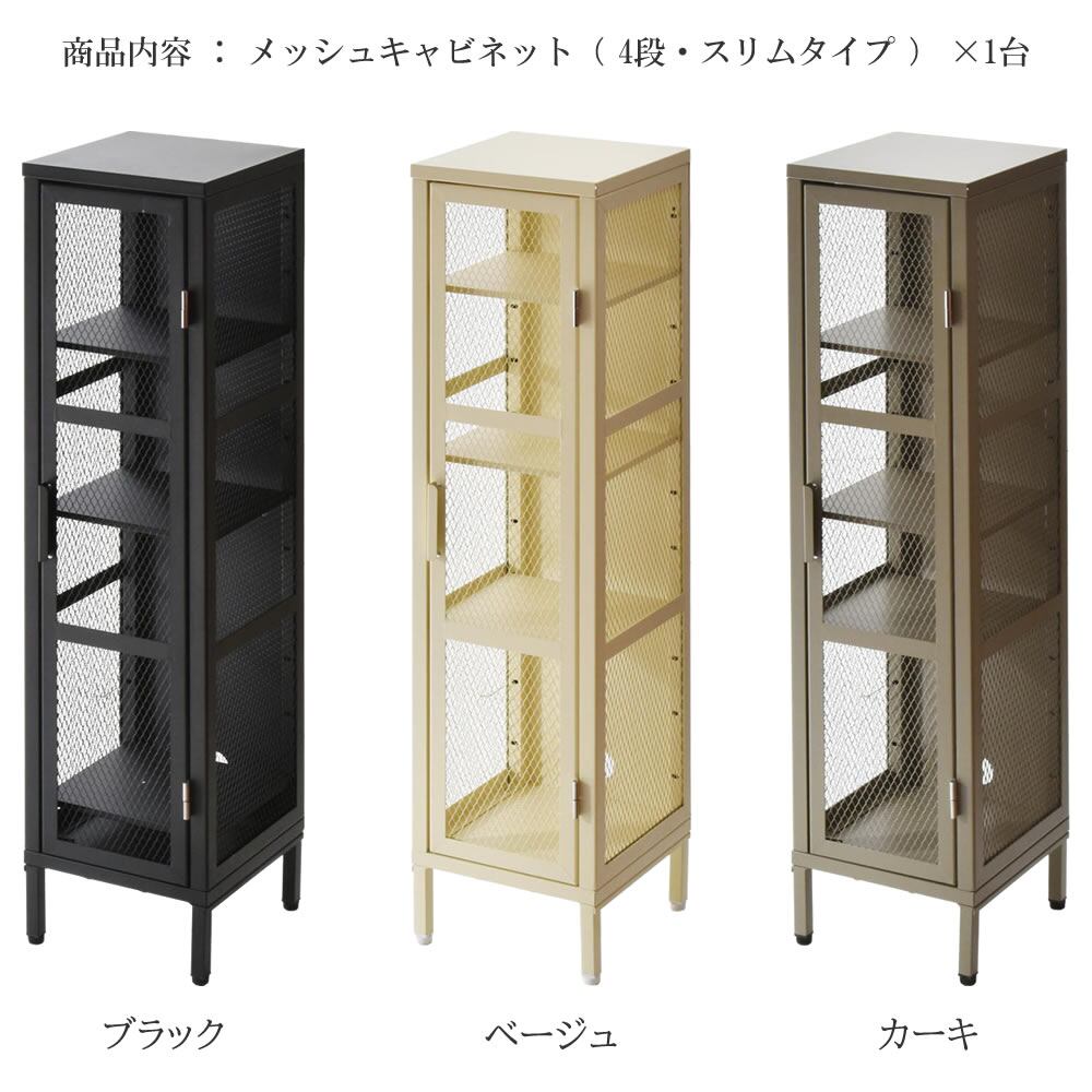 メッシュキャビネット 28cm幅 スリムタイプ 4段ラック 四段収納キャビネット 4段キャビネット ブラック ベージュ カーキ リビング収納 キッチン収納 玄関収納 収納ラック 可動棚 収納棚 スチールフレーム 収納キャビネット ディスプレイラック おすすめ おしゃれ モダン スタイリッシュ 棚 収納 スリム コンパクト 省スペース