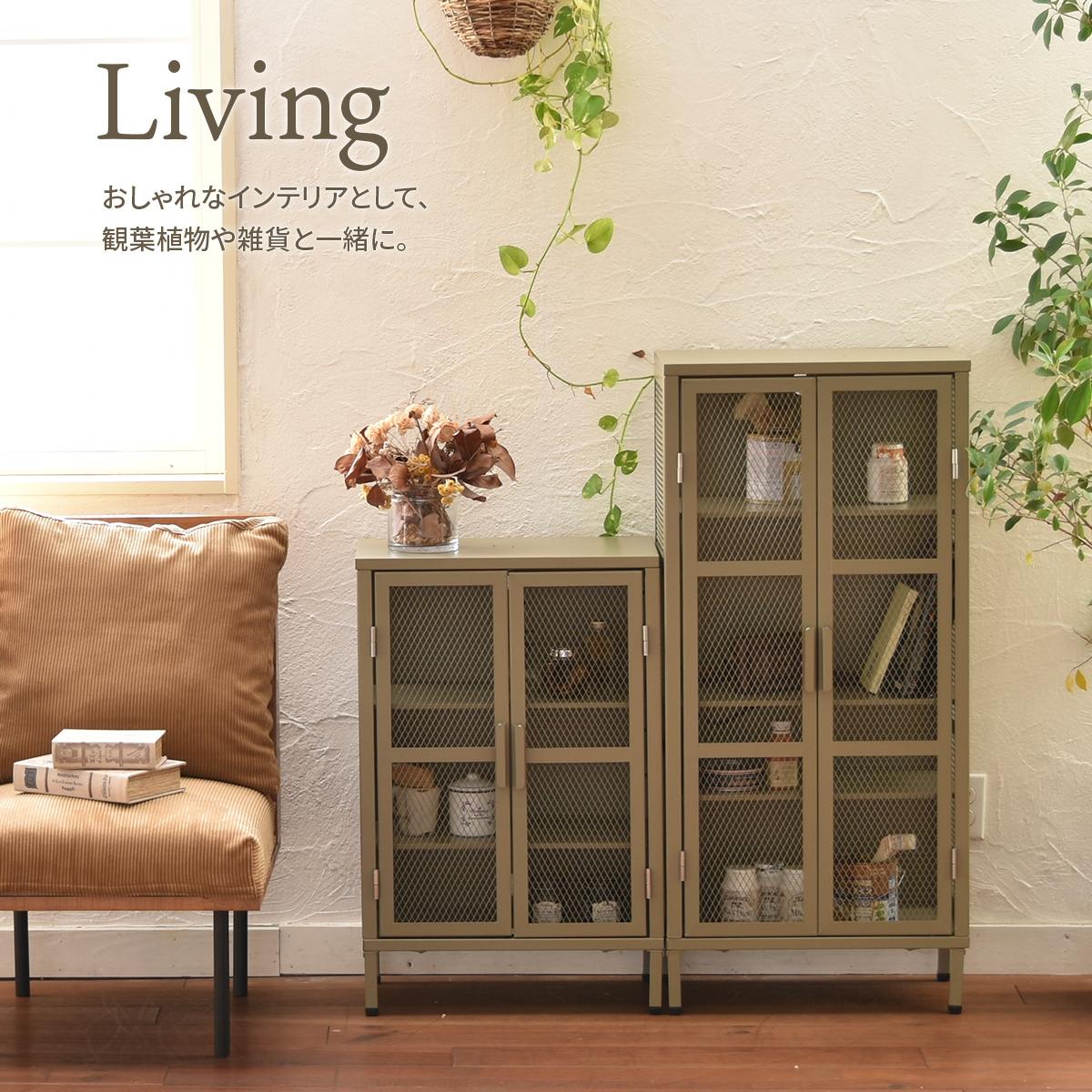 リビングでの収納キャビネットとしての使用はもちろん、キッチン収納として、また玄関収納としても設置しやすいデザイン性と機能性を備えたキャビネットです。