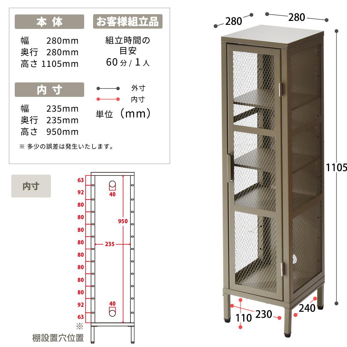 ■商品内容:メッシュキャビネット(4段:スリムタイプ)×1台