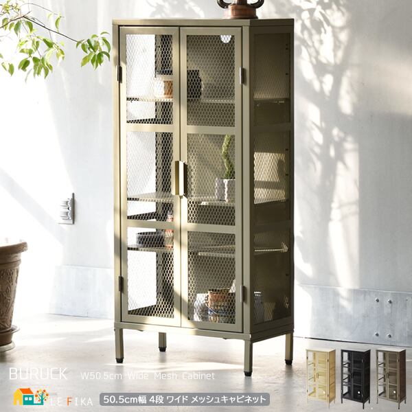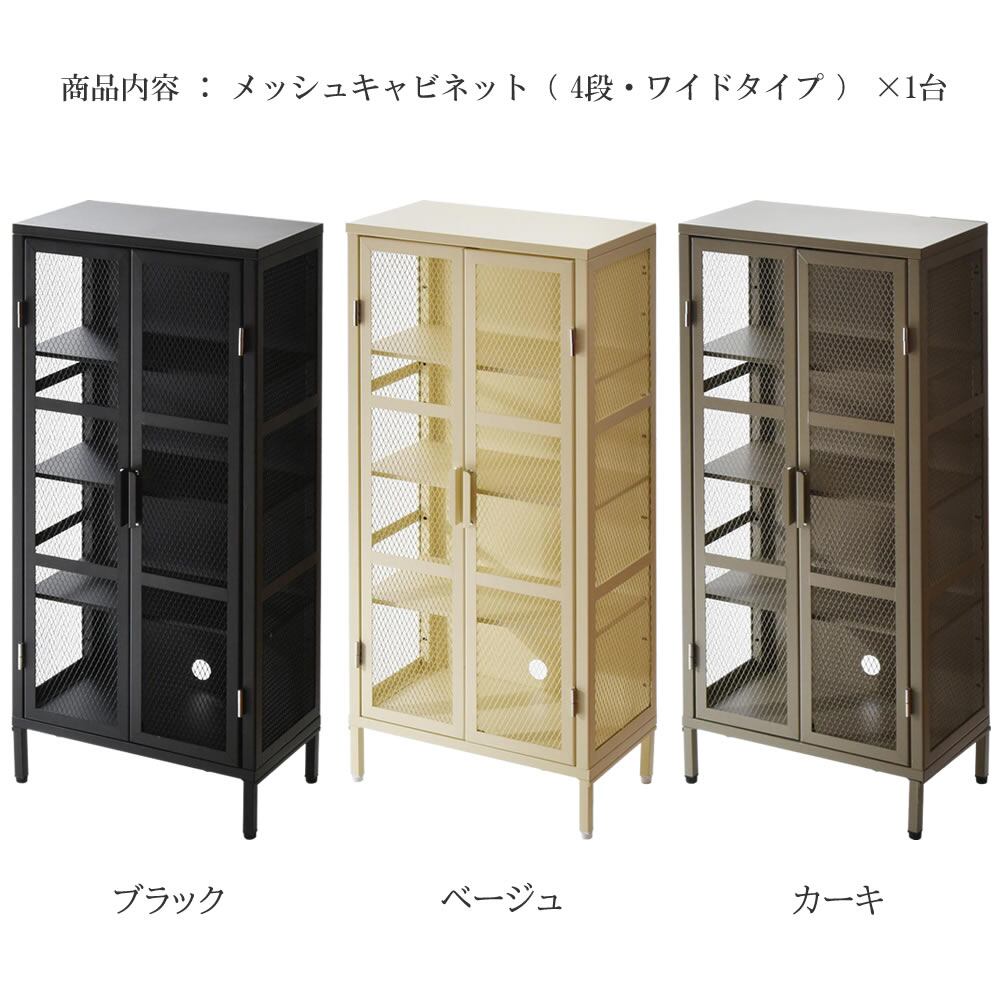 メッシュキャビネット 50.5cm幅 ワイドタイプ 4段ラック 四段収納キャビネット 4段キャビネット ブラック ベージュ カーキ リビング収納 キッチン収納 玄関収納 収納ラック 可動棚 収納棚 スチールフレーム 収納キャビネット ディスプレイラック おすすめ おしゃれ モダン スタイリッシュ 棚 収納 スリム コンパクト 省スペース