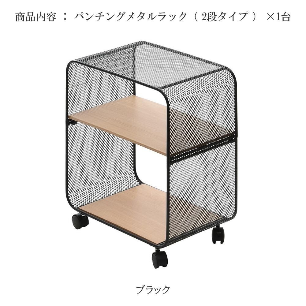 メタルラック 44cm幅 2段タイプ ブラック 2段ラック 二段収納ラック パンチングメタルラック キャスター付きラック 収納ラック オープン収納 サイドワゴン キャビネット 収納ラック キャスター付きメタルラック おすすめ おしゃれ モダン スタイリッシュ オープンラック ディスプレイラック デスクサイドラック ソファサイド ベッドサイド オープンシェルフ パンチングスチール キッチン収納 キッチンワゴン リビング収納 サイドラック 玄関収納 洗面所収納 サニタリー収納