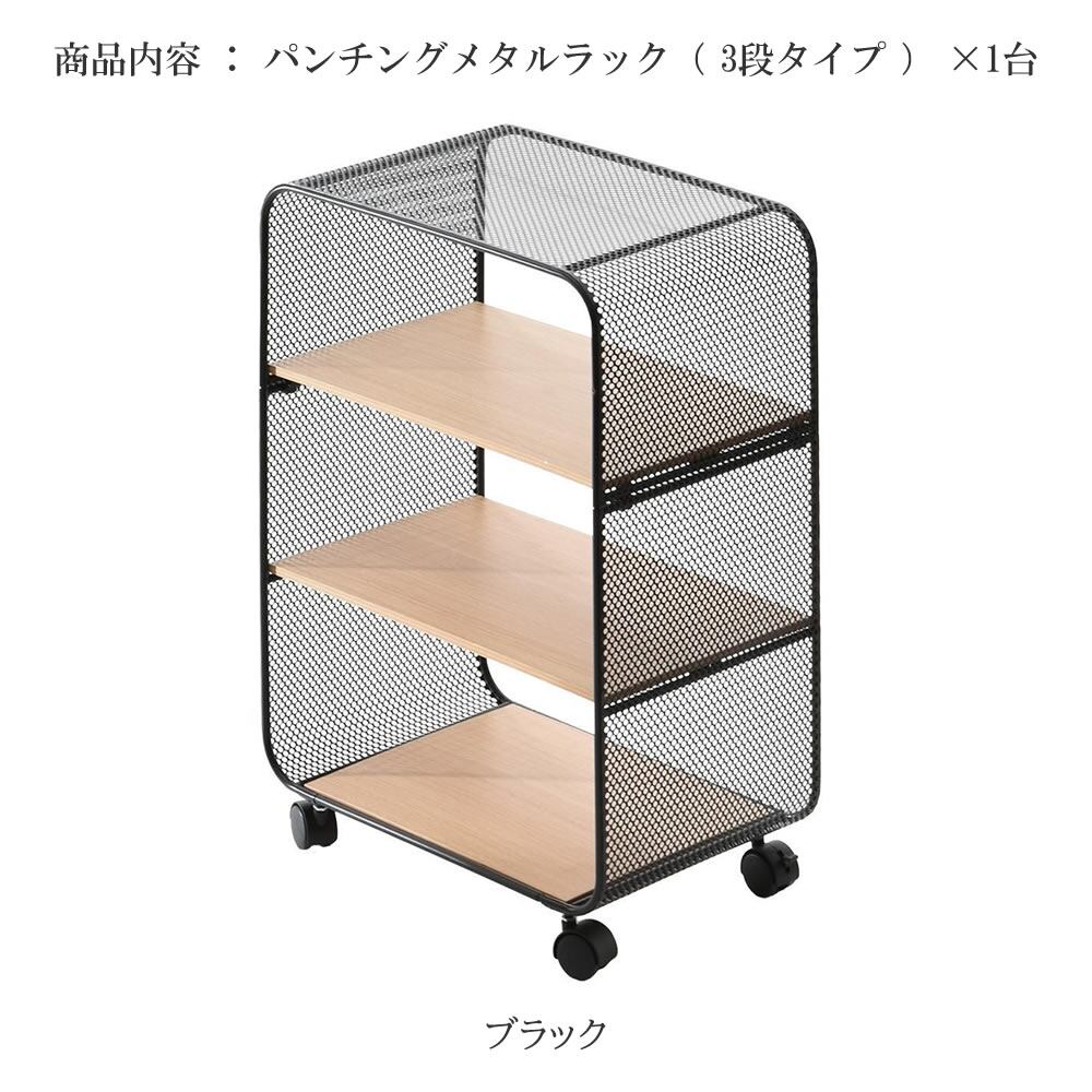 メタルラック 44cm幅 3段タイプ ブラック 三段ラック 3段収納ラック パンチングメタルラック キャスター付きラック 収納ラック オープン収納 サイドワゴン キャビネット 収納ラック キャスター付きメタルラック おすすめ おしゃれ モダン スタイリッシュ オープンラック ディスプレイラック デスクサイドラック ソファサイド ベッドサイド オープンシェルフ パンチングスチール キッチン収納 キッチンワゴン リビング収納 サイドラック 玄関収納 洗面所収納 サニタリー収納