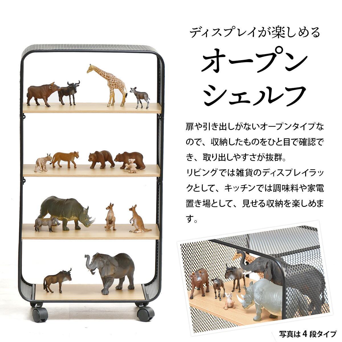 3段タイプは程よいサイズ感で、スリム設計で設置場所も選ばないため、リビング収納としてはもちろん、キッチンワゴンやランドリーラックとしての使用もおすすめです。