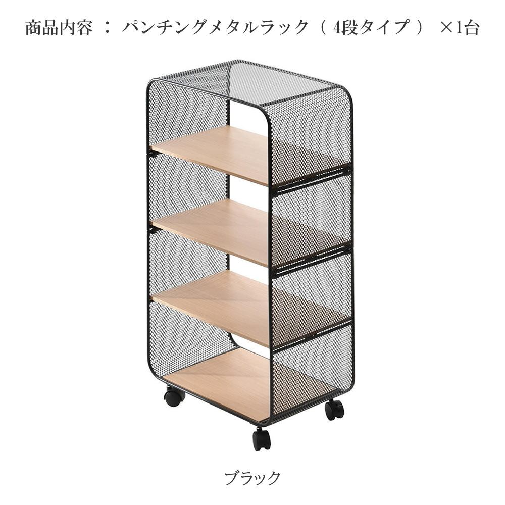 メタルラック 44cm幅 4段タイプ ブラック 四段ラック 4段収納ラック パンチングメタルラック キャスター付きラック 収納ラック オープン収納 サイドワゴン キャビネット 収納ラック キャスター付きメタルラック おすすめ おしゃれ モダン スタイリッシュ オープンラック ディスプレイラック デスクサイドラック ソファサイド ベッドサイド オープンシェルフ パンチングスチール キッチン収納 キッチンワゴン リビング収納 サイドラック 玄関収納 洗面所収納 サニタリー収納