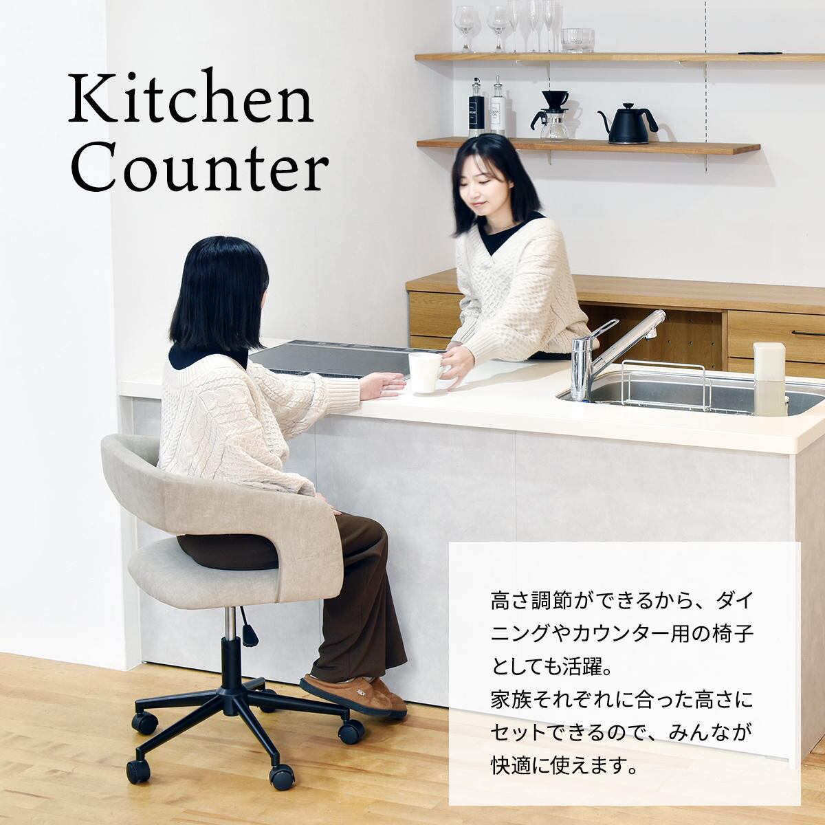 デスク用のチェアとしての使用はもちろん、キチンカウンター用のダイニングチェアとしての使用もおすすめです。