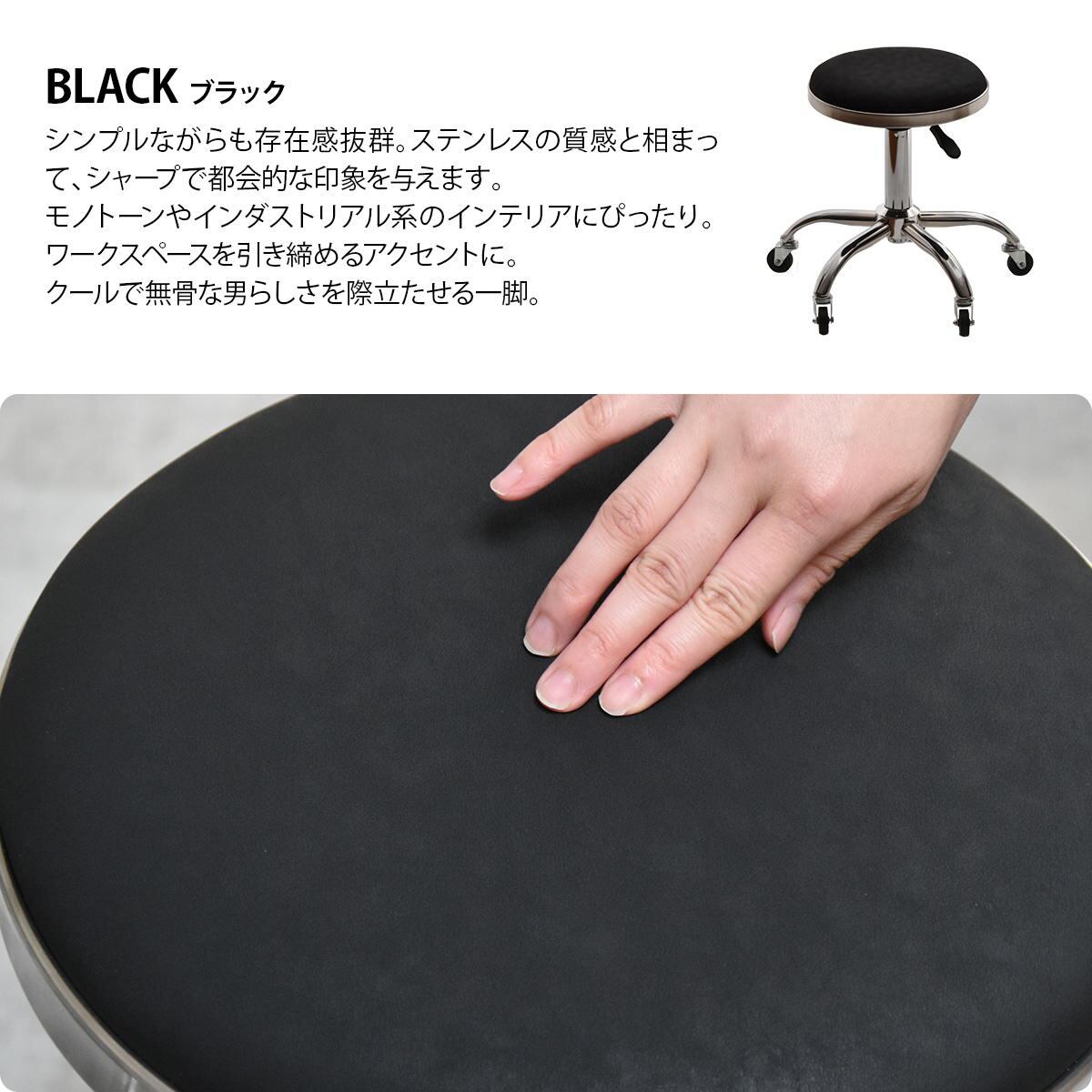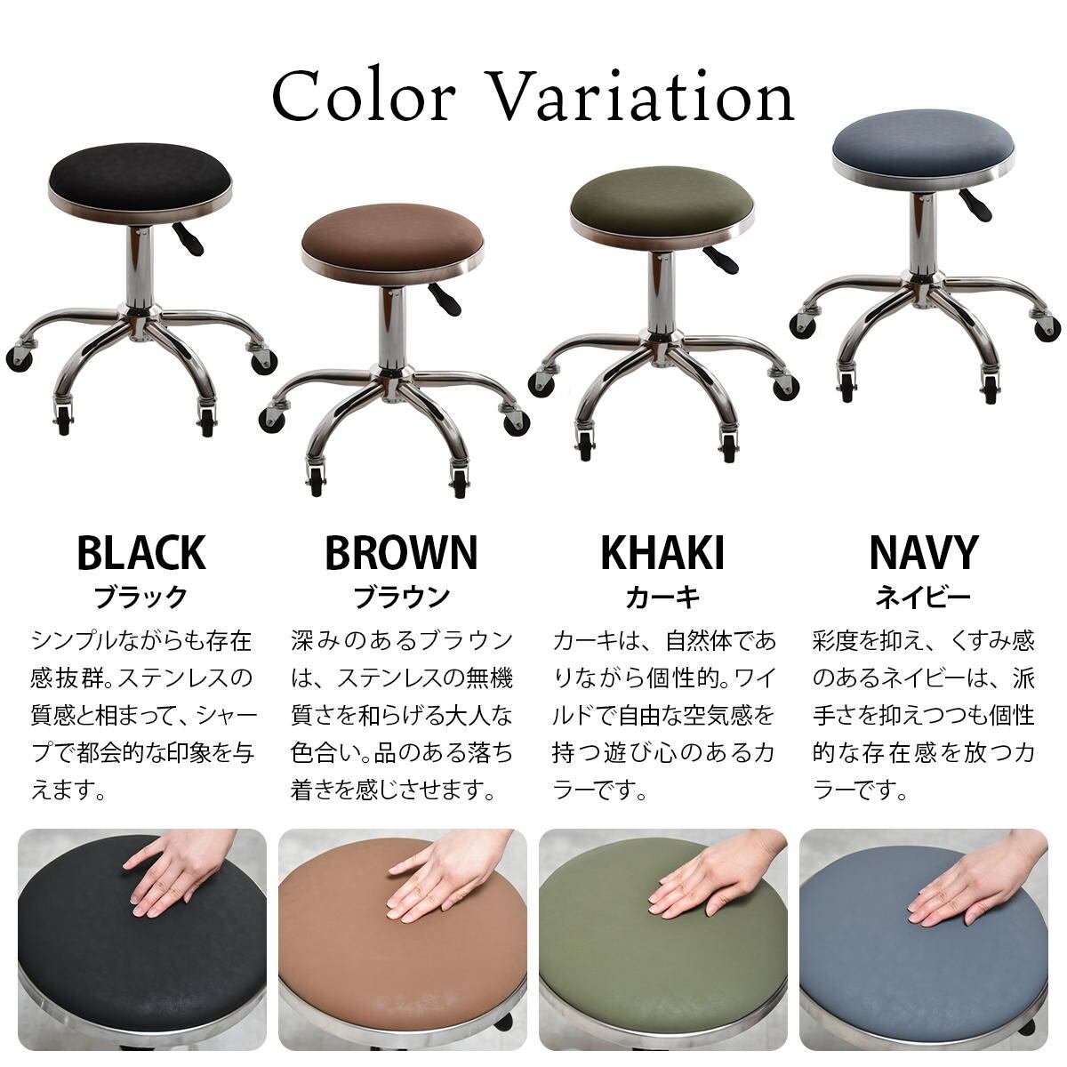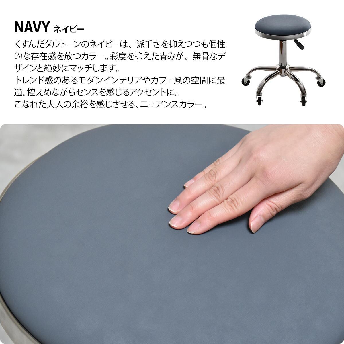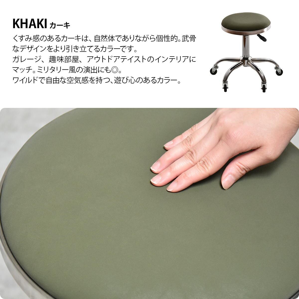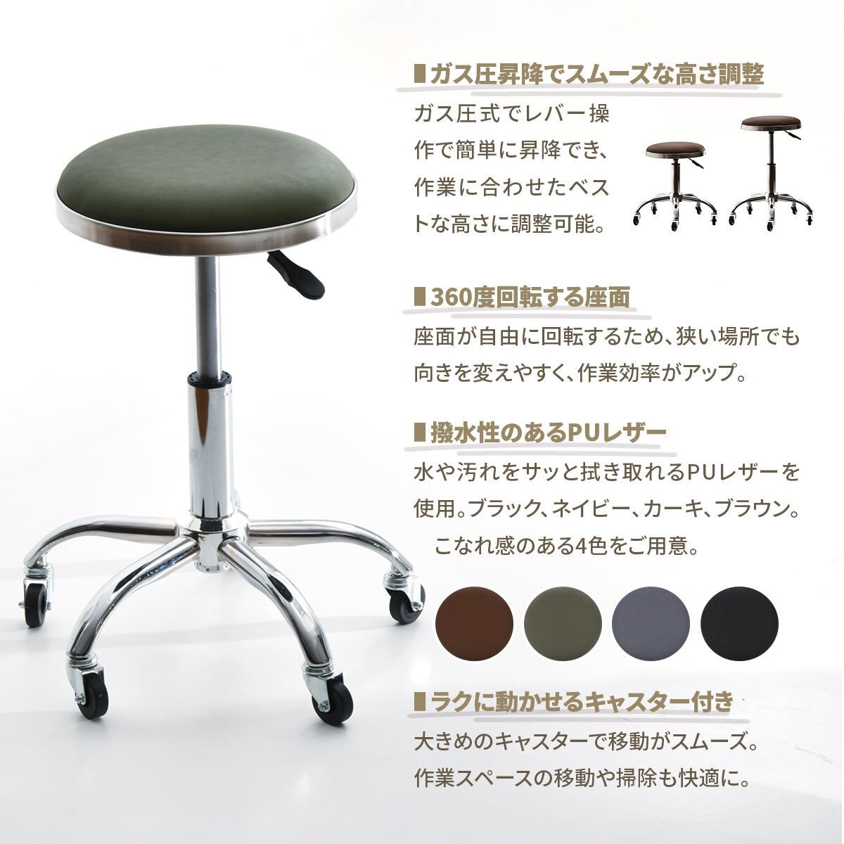 キャスター付きスツール 51cm幅 ブラック ブラウン カーキ ネイビー 昇降スツール ガス圧昇降式 回転いす 回転式スツール コンパクト 省スペース 軽量 キャスター付き椅子 チェア 背もたれ無し 肘掛け無し 肘置き無し 腰掛け サブチェア デスク用スツール キッチンスツール 高さ調整可能 昇降式椅子 360度回転式チェア 作業スツール 作業チェア おすすめ おしゃれ 合成皮革 合皮チェア PUレザー 椅子 チェアー