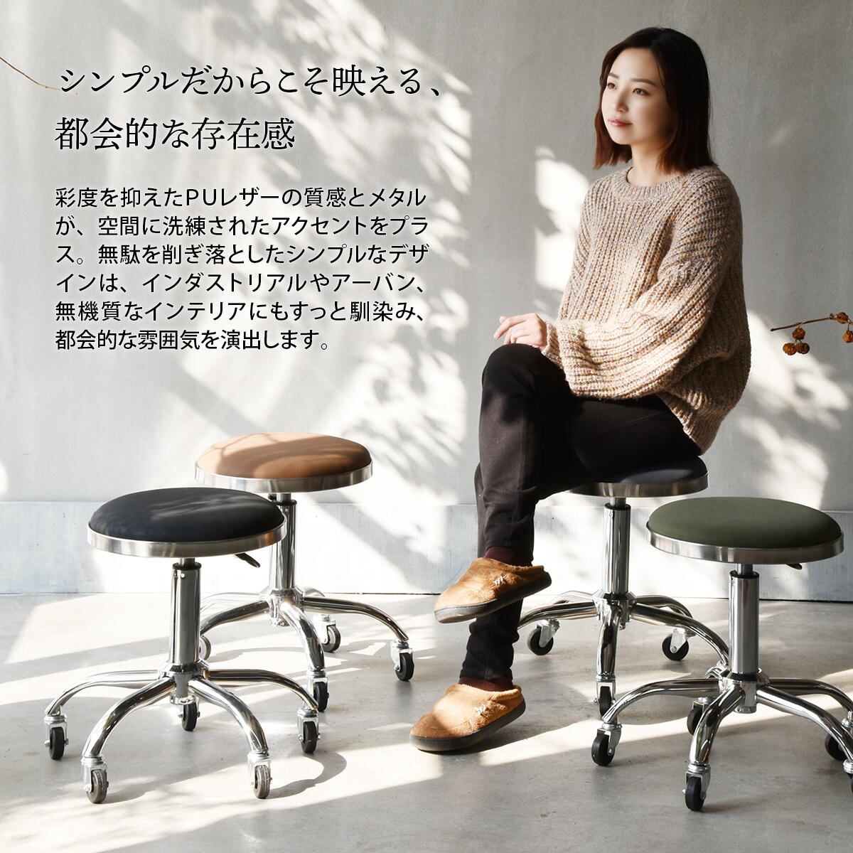 デスク用のスツールとしても使用はもちろん、キッチンやカウンター、サロンなど設置場所を選ばず色んなシーンで使用が可能なスツールです。