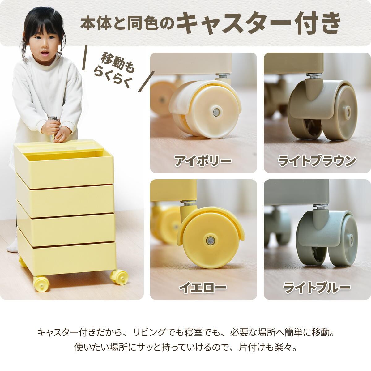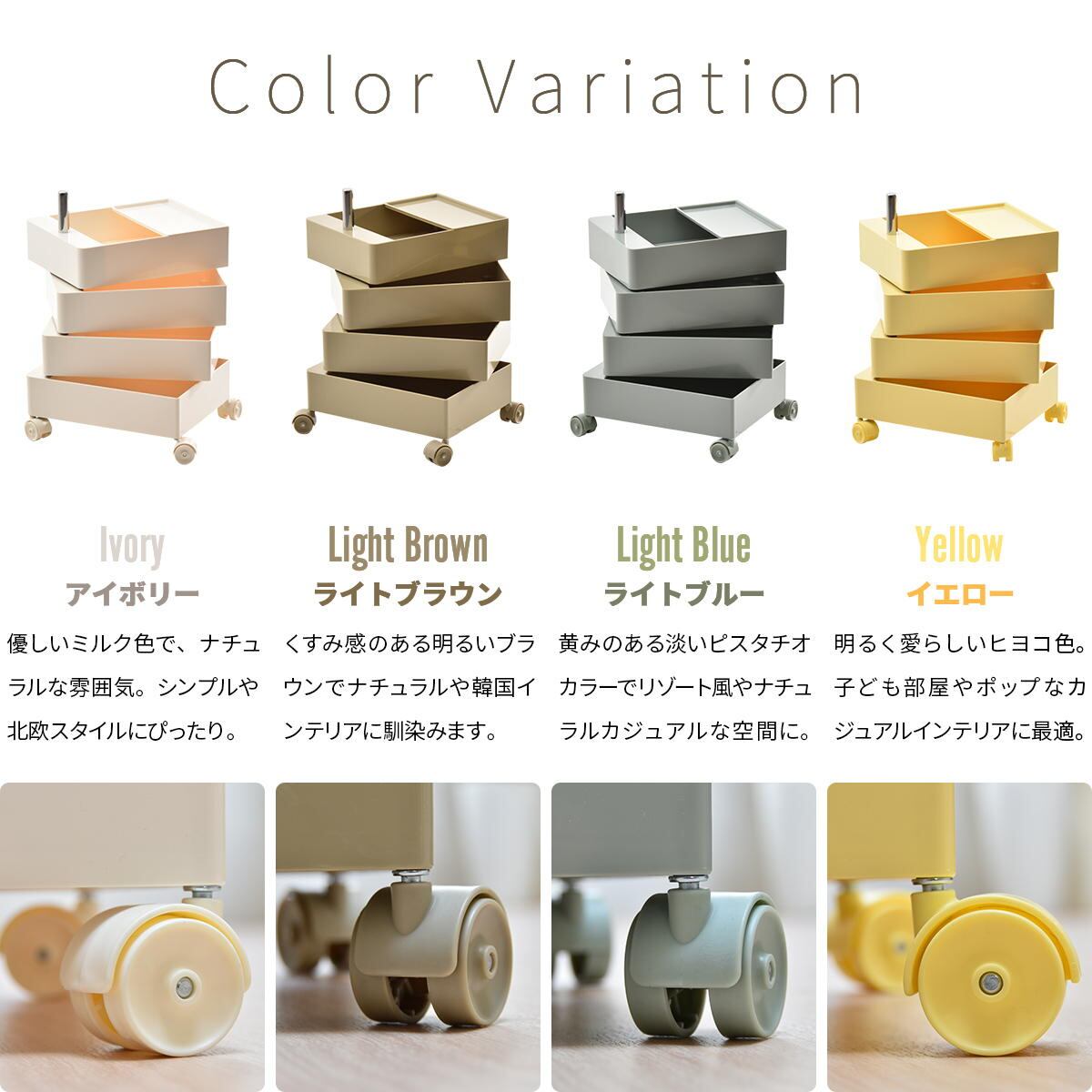 4段ワゴン 49.5cm幅 ライトブルー ライトブラウン アイボリー イエロー 360度回転 収納ワゴン 4段収納 リビング収納 デスクサイド ソファサイド サイドワゴン キッチンワゴン 子供部屋ワゴン キャスター付き収納 おすすめ おしゃれ シンプル ベーシック 回転式引き出し 収納棚 軽量 コンパクト 小物収納 キッチン用品収納 学校道具収納 学習用具収納