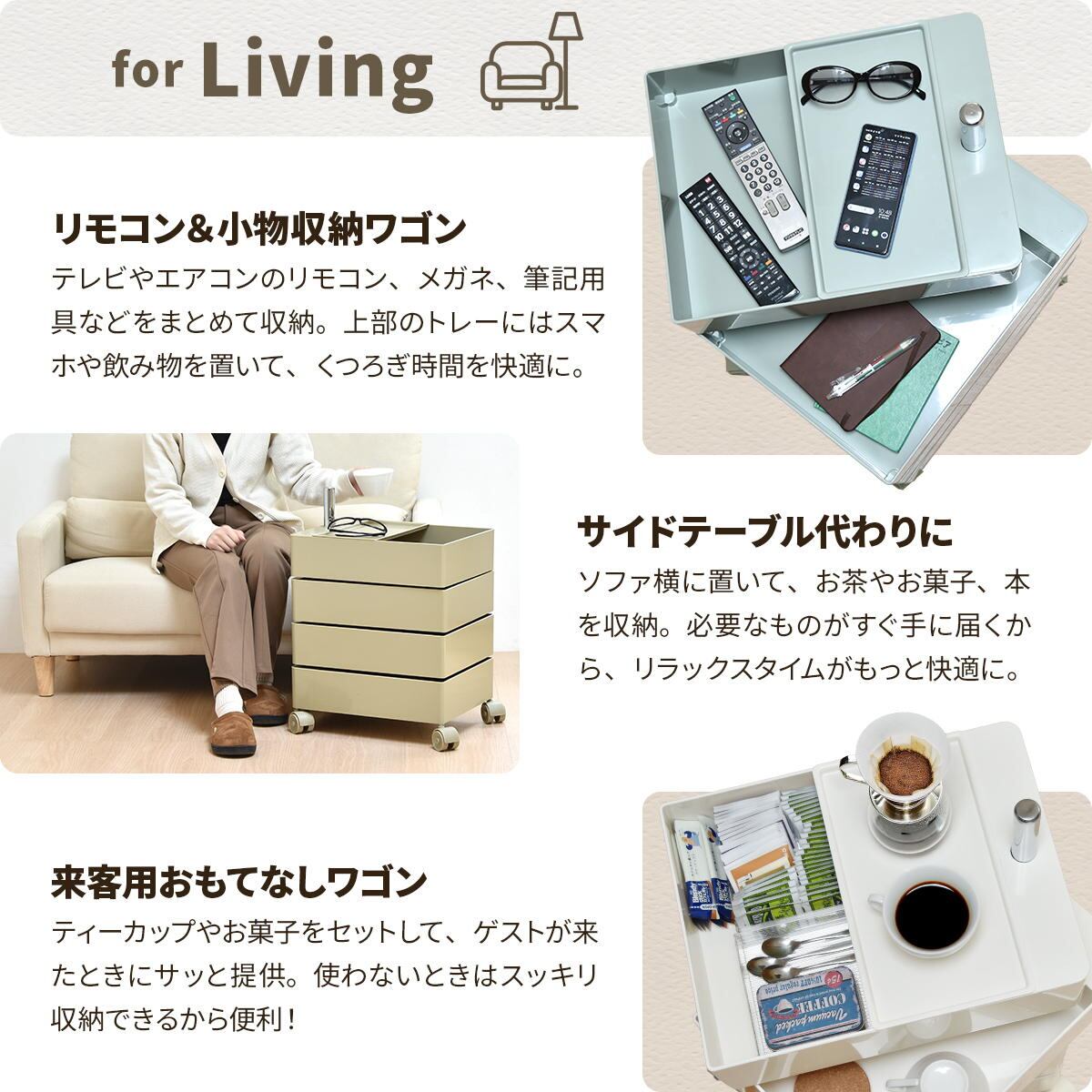 リビングでの使用はもちろん、キッチンワゴンとしてや、子供用の収納ワゴンとしての使用もおすすめのマルチワゴンです。
