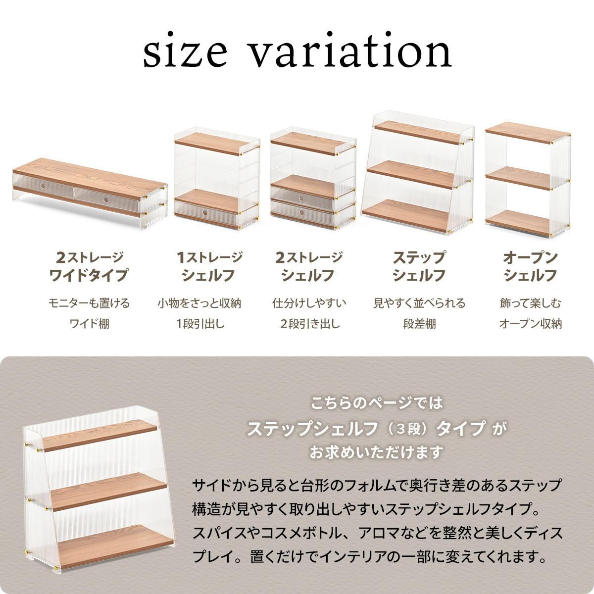 ・当ページの販売商品タイプは「ステップシェルフ(3段)タイプ」となります。