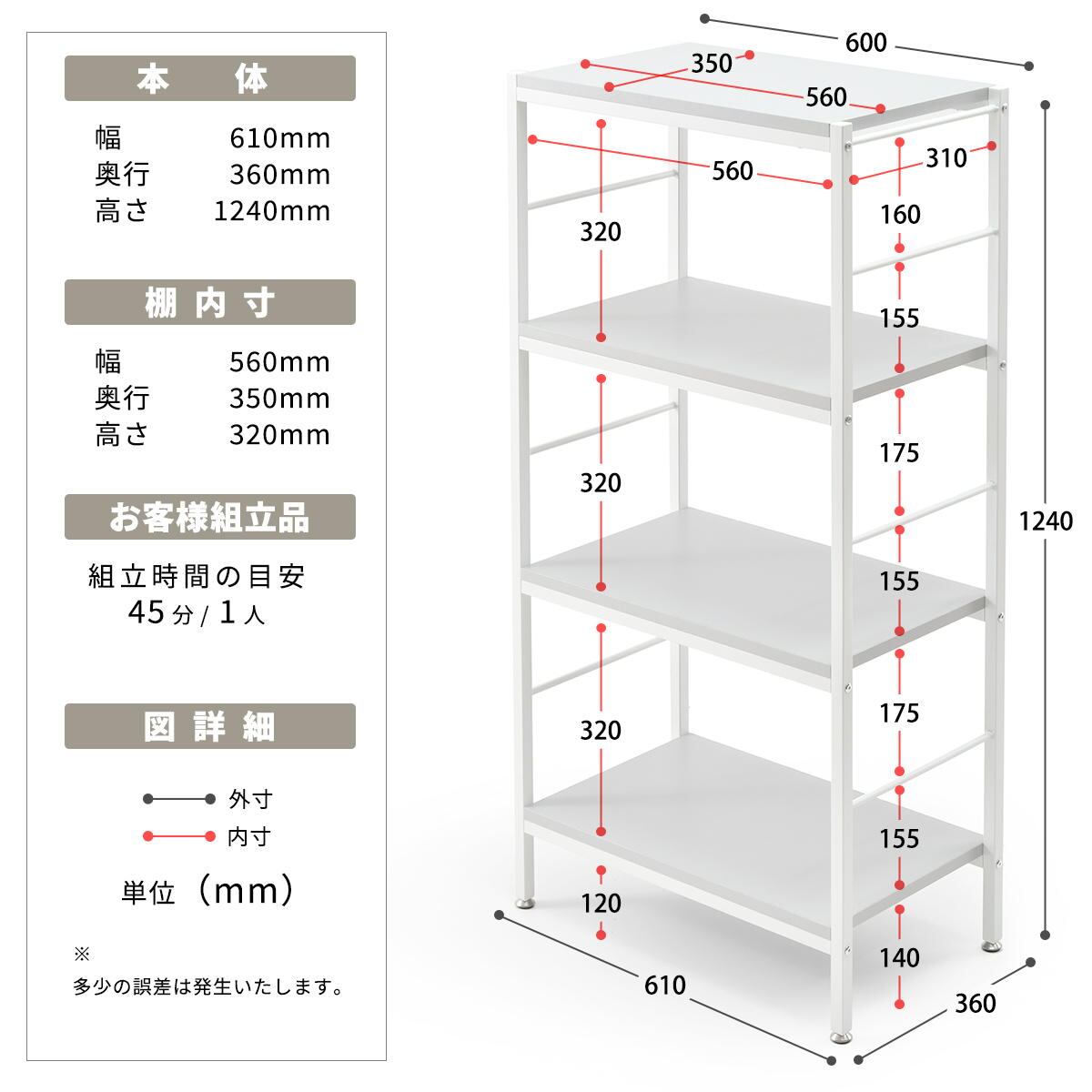 ■商品内容:4段ラック(幅60cmタイプ)×1台