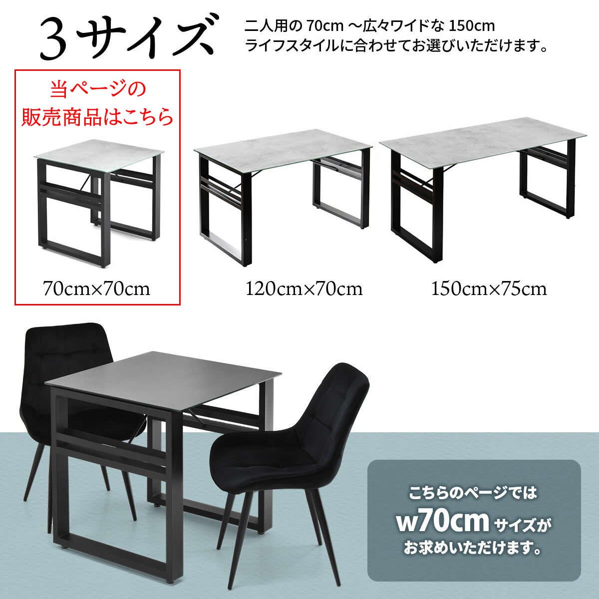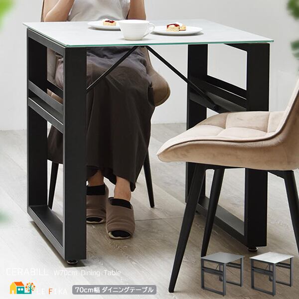 天板ガラスの表面にセラミック焼き付け加工を施した70cm幅のダイニングテーブル1台単品です。