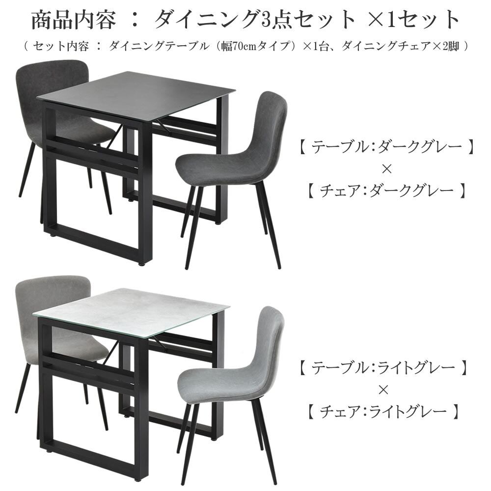 ダイニング3点セット ダイニングテーブル1台 ダイニングチェア2脚 合計3点セット テーブル70cm幅 ダークグレー ライトグレー 正方形テーブル 収納付きテーブル 食卓用テーブル 作業台 作業机 作業テーブル 作業デスク おすすめ おしゃれ 北欧 モダン スタイリッシュ ワークデスク ダイニング机 ダイニングテーブルセット ダイニングチェア ピーチスキンチェア ワークチェア 肘掛け無し 肘置き無し アームレスチェア ダイニングチェアセット